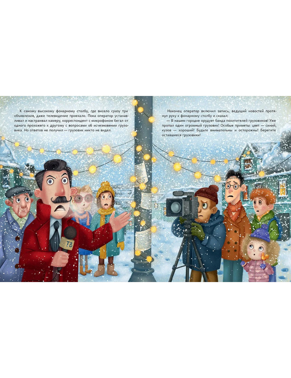 В маленьком городке перед Новым годом пропал синий грузовик. Жители обсуждали это удивительное происшествие весь день, но никто не заметил, что в сквере возле скамейки выросла снежная кочка. Под ней и прятался грузовик — любимая игрушка и лучший друг мальчика Дани. К вечеру грузовичок совсем загрустил, но тут его заметил большой красный трактор. Он отвёз грузовик на площадь, где устанавливали главную ёлку. Так начались настоящие приключения грузовичка!