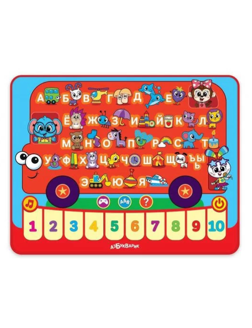 Планшетик Азбука предлагает малышу послушать детские песенки и отгадать загадки. Интересное интерактивное обучение позволяет провести время весело и с пользой.