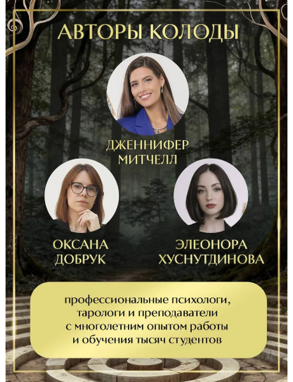 Авторы колоды — Дженнифер Митчелл, Оксана Добрук и Элеонора Хуснутдинова — профессиональные психологи, тарологи и преподаватели с многолетним опытом работы и обучения тысяч студентов.
