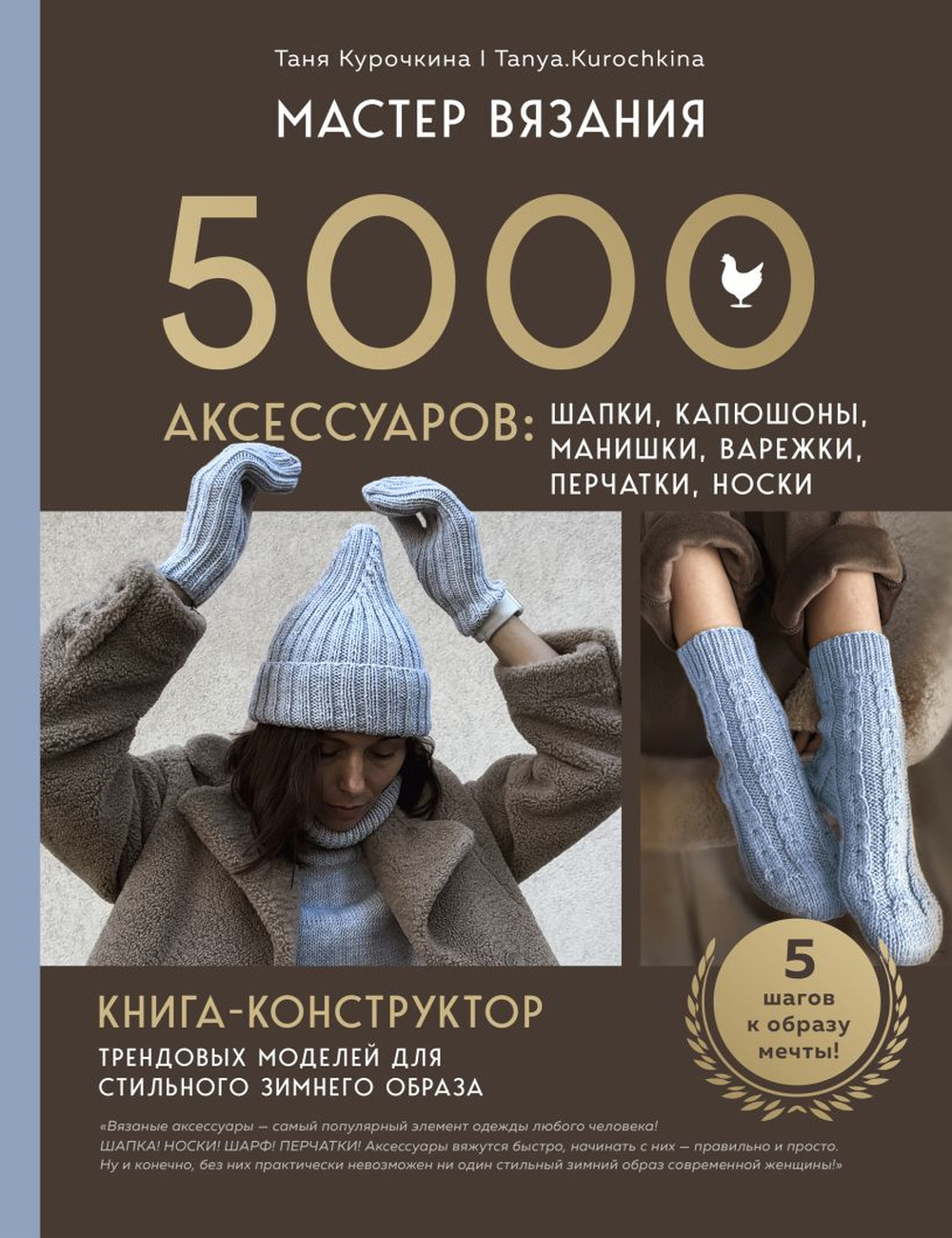 Таня Курочкина — популярный блогер, мастер вязания с многолетним опытом и невероятной любовью к своему делу. Основатель онлайн-школы, в которой учатся более 30 000 человек со всего мира, основатель и организатор благотворительных акций «Шапочный марафон» и «Носочный марафон» для детей из детских домов и домов престарелых. Автор множества бестселлеров, соавтор проекта «Созвездие. Вяжем с лучшими мастерами страны».
