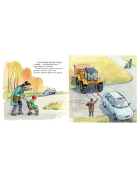Но… постойте, что это тарахтит на соседней улице? Саша с мамой подходят ближе и видят, что там работает самый настоящий трактор – он выкорчёвывает пень. Саша в восхищении: он и не знал, что трактор такое умеет. Мама с Сашей идут дальше и видят ещё один трактор – этот грузит песок в самосвал. Ну а дальше – больше! В то утро по дороге в садик маме с Сашей посчастливилось увидеть множество тракторов, один другого интереснее: и трактор с прицепом для лодки, и с подметальной щёткой, и с плугом, и с погрузочными вилами и даже с дровоколом. Словом, дорога до садика оказалась ничуть не скучной!