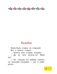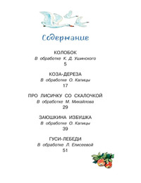В нашей книге из серии «Библиотека для дошколят» русские народные сказки для самых маленьких детей, которые ещё не умеют читать. Это «Колообок», «Коза-дереза», «Про лисичку со скалочкой», «Заюшкина избушка» и «Гуси-лебеди». Эти сказки рекомендованы педагогами, которые работают с дошкольниками и формируют интерес к чтению у малышей.