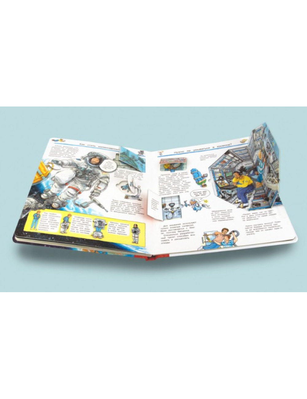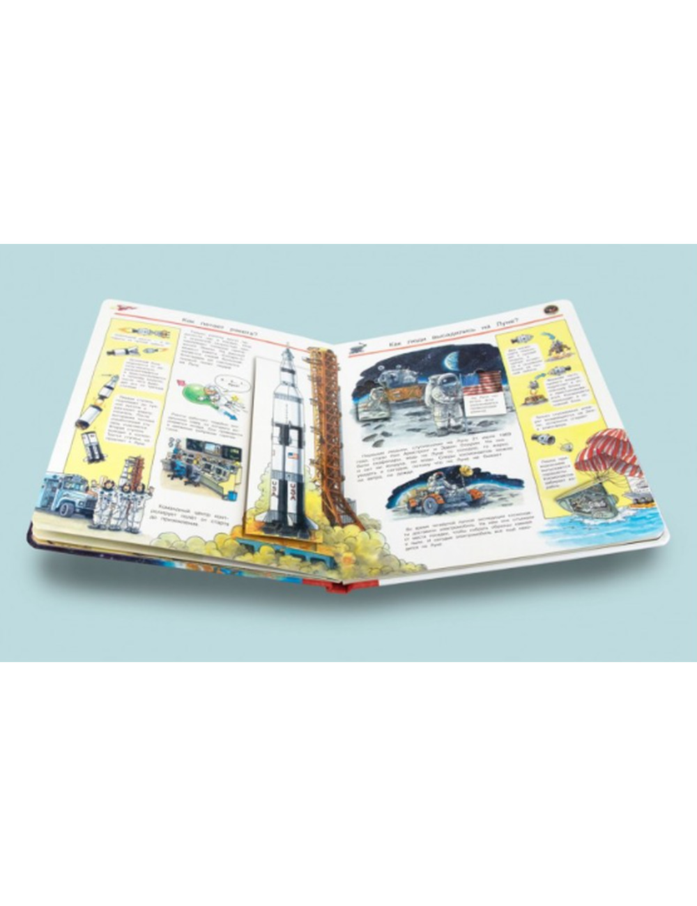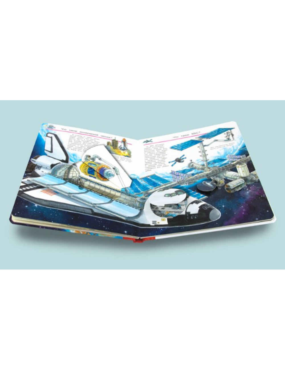 Каждый книжный разворот энциклопедии насыщен массой интереснейшей информации, красочно и занимательно, в игровой форме, рассказывающей об удивительных фактах и тайнах окружающего нашу планету космического пространства, а также об этапах развития космонавтики.