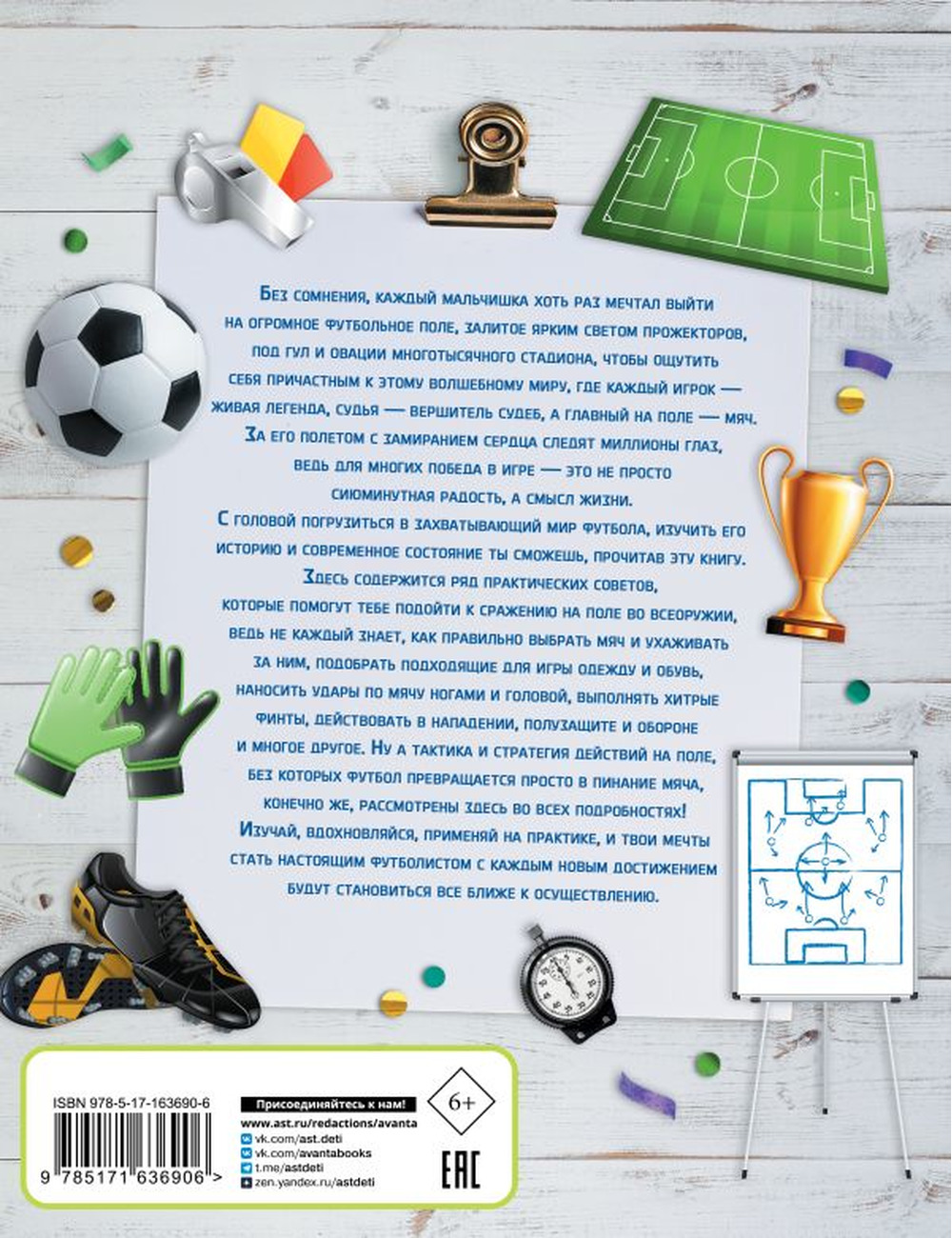 Эта книга расскажет тебе о том, что такое настоящий профессиональный футбол, о его истории и развитии в наши дни. Прочитав ее, ты узнаешь обо всех тонкостях этой "игры миллионов", ознакомишься со многими нюансами действующих правил, о которых, возможно, раньше даже не слышал. Кроме того, здесь содержится ряд практических советов, которые помогут тебе подойти к сражению на поле во всеоружии, ведь не каждый знает, как правильно выбрать мяч и ухаживать за ним, подобрать подходящие для игры одежду и обувь, наносить удары по мячу ногами и головой, выполнять хитрые финты, действовать в нападении, полузащите и обороне и многое другое. Ну а тактика и стратегия действий на поле, без которых футбол превращается просто в пинание мяча, конечно же, рассмотрены здесь во всех подробностях! Мы уверены: прочитав эту книгу, ты не только узнаешь много нового об этой замечательной игре, но и значительно повысишь свои игровые навыки, ну а если футбол — твоя страсть и ты решил отдавать ему все свое свободное время, она станет для тебя незаменимым помощником, компетентным консультантом и настольным тренером.