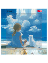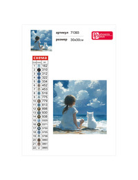 Алмазная мозаика (набор для творчества), ДЕВОЧКА С КОТЕНКОМ НА МОРЕ, 30*30 см, форма страз: круглая, 22 цветов страз, картонная коробка