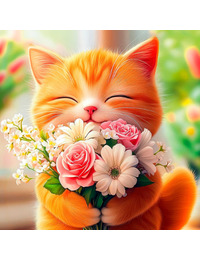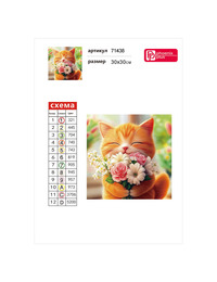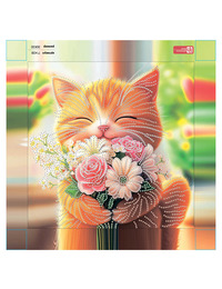 Алмазная мозаика с частичной выкладкой (набор для творчества), КОТЕНОК С БУКЕТОМ, 30*30 см, форма страз: круглая, 12 цветов страз, картонная коробка