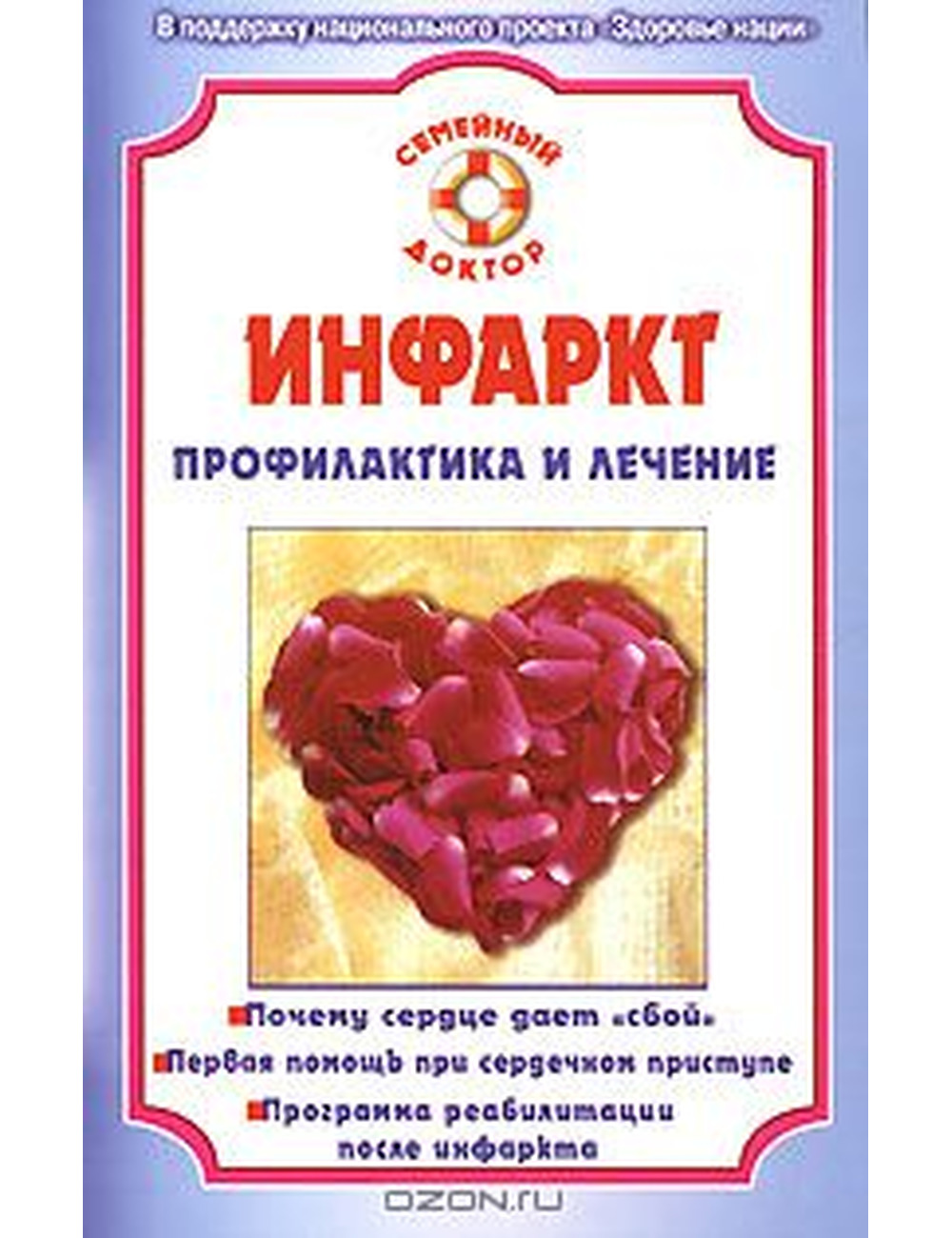 В последнее время стремительно "молодеют" сердечные болезни. Среди них инфаркт занимает одно из первых мест. В книге собрана наиболее подробная информация об инфаркте миокарда. Прочитав ее, читатель сможет сориентироваться в важнейших вопросах: как устроена и действует сердечно-сосудистая система; каковы факторы риска, приводящие к инфаркту; как эта болезнь проявляет себя, чем опасна, как ее предупреждать и лечить; в каких ситуациях нужно немедленно обращаться к врачу; как наладить жизнь после инфаркта. Поддержать сердце помогут лекарственные травы, диетотерапия, аутотренинг, лечебная гимнастика и другие методики. Во многих случаях, особенно в процессе реабилитации после инфаркта, эта книга станет прекрасным, надежным советчиком.