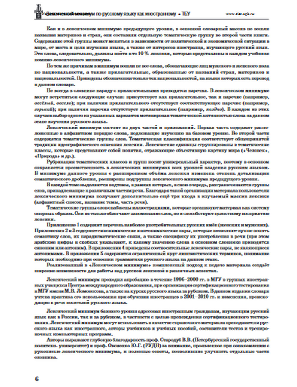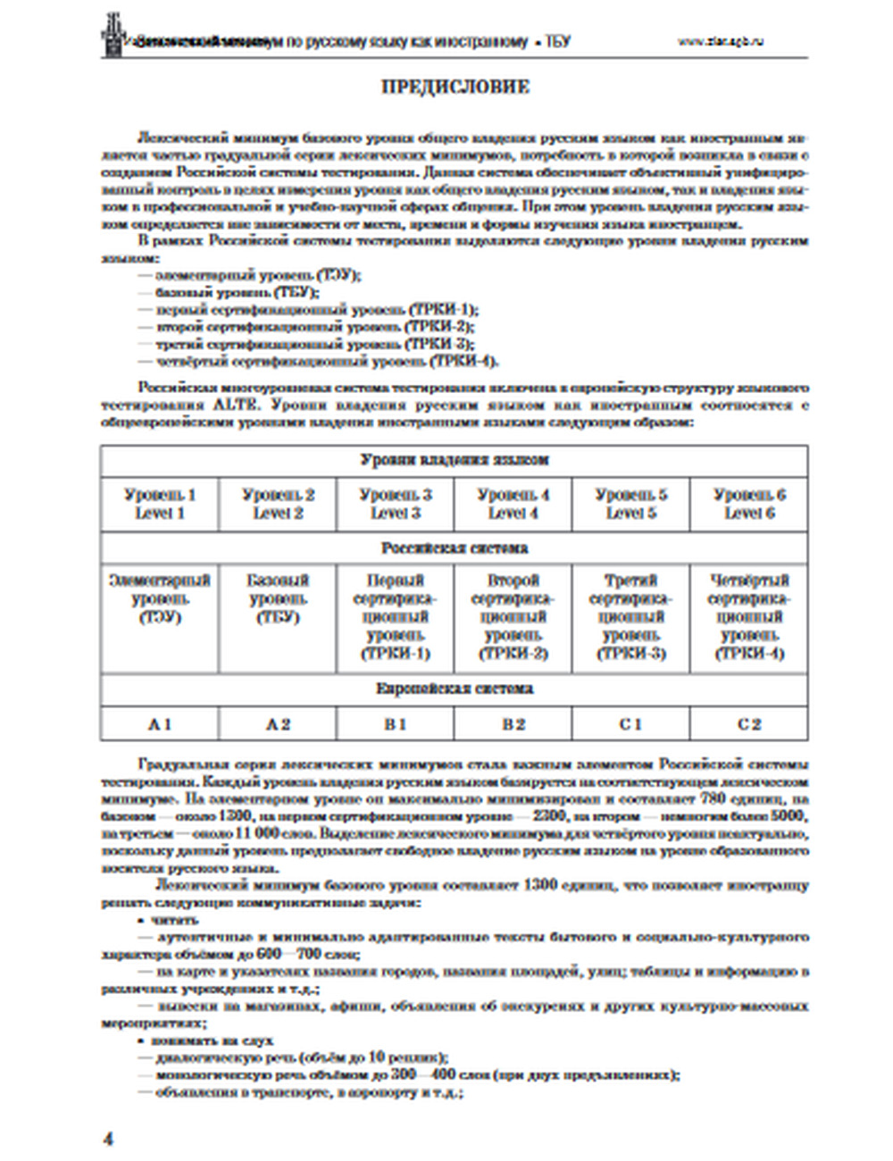 Издание является частью официального комплекса материалов Российской системы тестирования граждан зарубежных стран по русскому языку, включающей помимо типовых тестов лексические минимумы и образовательные стандарты (для 1—3 уровней владения русским языком в комплекс входят также профессионально ориентированные модули). Лексический минимум может использоваться при подготовке к экзаменам на сертификат соответствующего уровня. Предназначен для учащихся всех форм обучения, преподавателей, авторов учебных пособий, администраций учебных центров и языковых школ, специалистов в области международного образования.