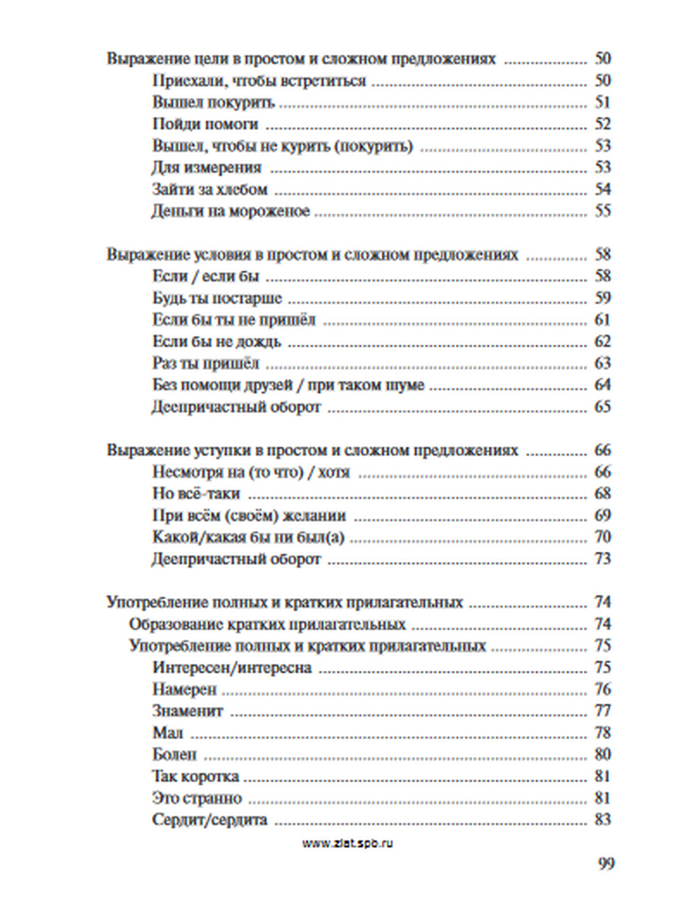 Учебное пособие адресовано учащимся-иностранцам, готовящимся сдавать тесты II сертификационного уровня (В2). Включает упражнения для усвоения грамматических тем, обычно вызывающих трудности при изучении их иностранцами: выражение времени, причины, цели, условия и уступки в простом и сложном предложениях, употребление полных и кратких прилагательных, неопределенных и отрицательных местоимений и наречий. Также содержит языковые упражнения, подготавливающие учащихся к использованию изученных конструкций в речи. Упражнения сопровождаются грамматическими комментариями. Для работы под руководством преподавателя.