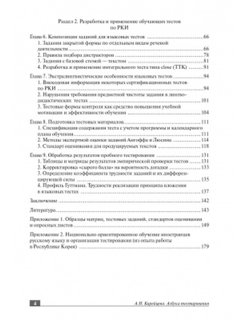 В пособии приводятся теоретические сведения, которые необходимы начинающему тестологу, анализируются уже существующие тестовые батареи и даются конкретные рекомендации по разработке и применению учебных тестов. Изложение тестологических концепций в пособии сведено до минимума: автор делает упор на практические советы по созданию дискретных тестов (по отдельным видам речевой деятельности) и интегральных тестов, позволяющих определить степень сформированности целостного представления о русском языке в сознании иностранца. Пособие призвано помочь преподавателям освоить применение обучающих тестов в повседневной учебной практике. Это позволит им лучше подготовить студентов-иностранцев к сертификационному тестированию, по-новому взглянуть на возможности оценки знаний учащихся и добиться ее большей объективности. Адресовано всем специалистам в области РКИ, а также студентам старших курсов, аспирантам и преподавателям различных филологических специальностей, интересующимся проблемами языкового тестирования.
