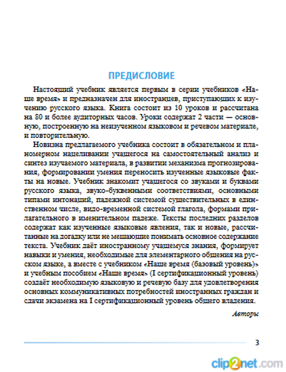 Учебное пособие предназначено для иностранцев, владеющих русским языком в объеме базового уровня, и предполагает достижение ими I сертификационного уровня, позволяющего удовлетворить основные коммуникативные потребности в повседневной и социально-культурной сферах общения. Учебное пособие соответствует требованиям Государственной системы стандартов по РКИ и рассчитан на 150—180 аудиторных часов. В центре внимания авторов учебника — сам субъект деятельности — учащийся с его коммуникативными потребностями, интересами, отношением к содержанию текста и его морали. Подача материала предполагает взаимосвязанное обучение аспектам языка и видам речевой деятельности и формирование у иностранных учащихся коммуникативной компетенции. Грамматическая основа пособия — синтаксис простого и сложного предложения. Материал отобран с учетом гуманистической направленности обучения и приоритета общечеловеческих ценностей.