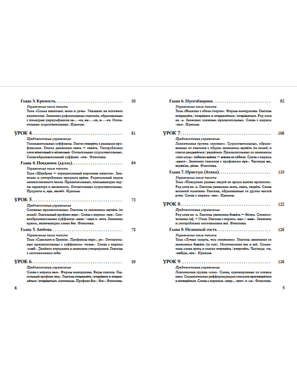 Пособие входит в серию "Читаем русскую классику", которая включает в себя адаптированные произведения русской литературы. Серия предназначена для иностранных студентов, изучающий русский язык на среднем этапе обучения. Данная книга состоит из 14 уроков. Все тексты снабжены необходимыми комментариями и сносками. Новые слова и словосочетания вводятся в виде сносок и переводятся на английский язык. При этом дается только контекстуальное значение слова или фразы. Разнообразные грамматические и лексические упражнения значительно облегчают чтение и помогают учащимся усвоить новый материал.