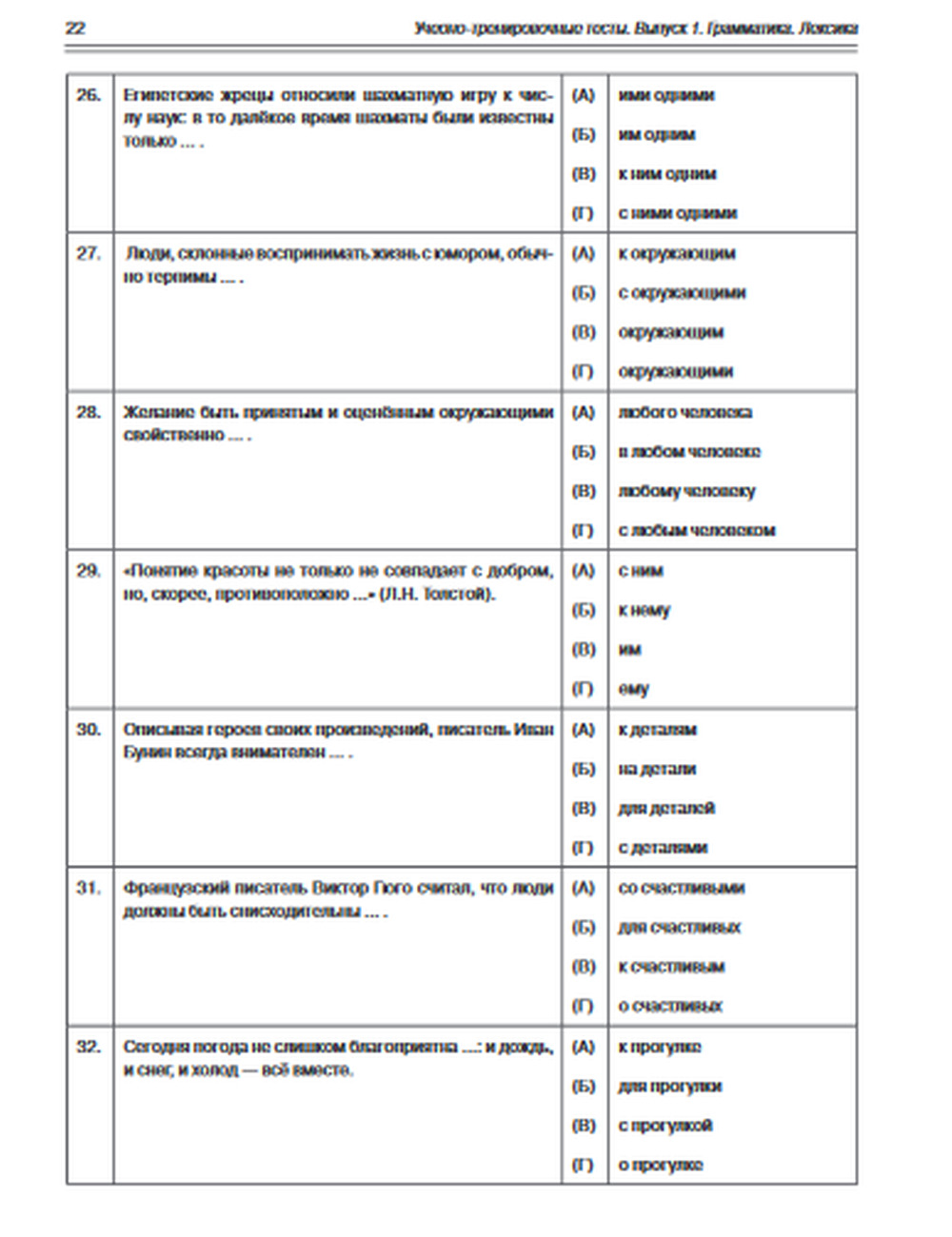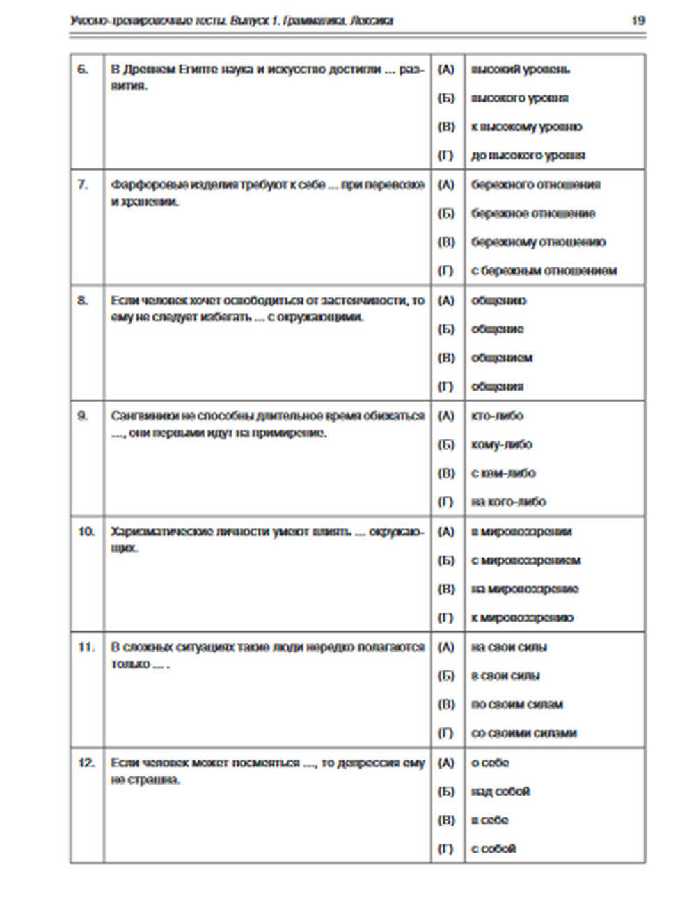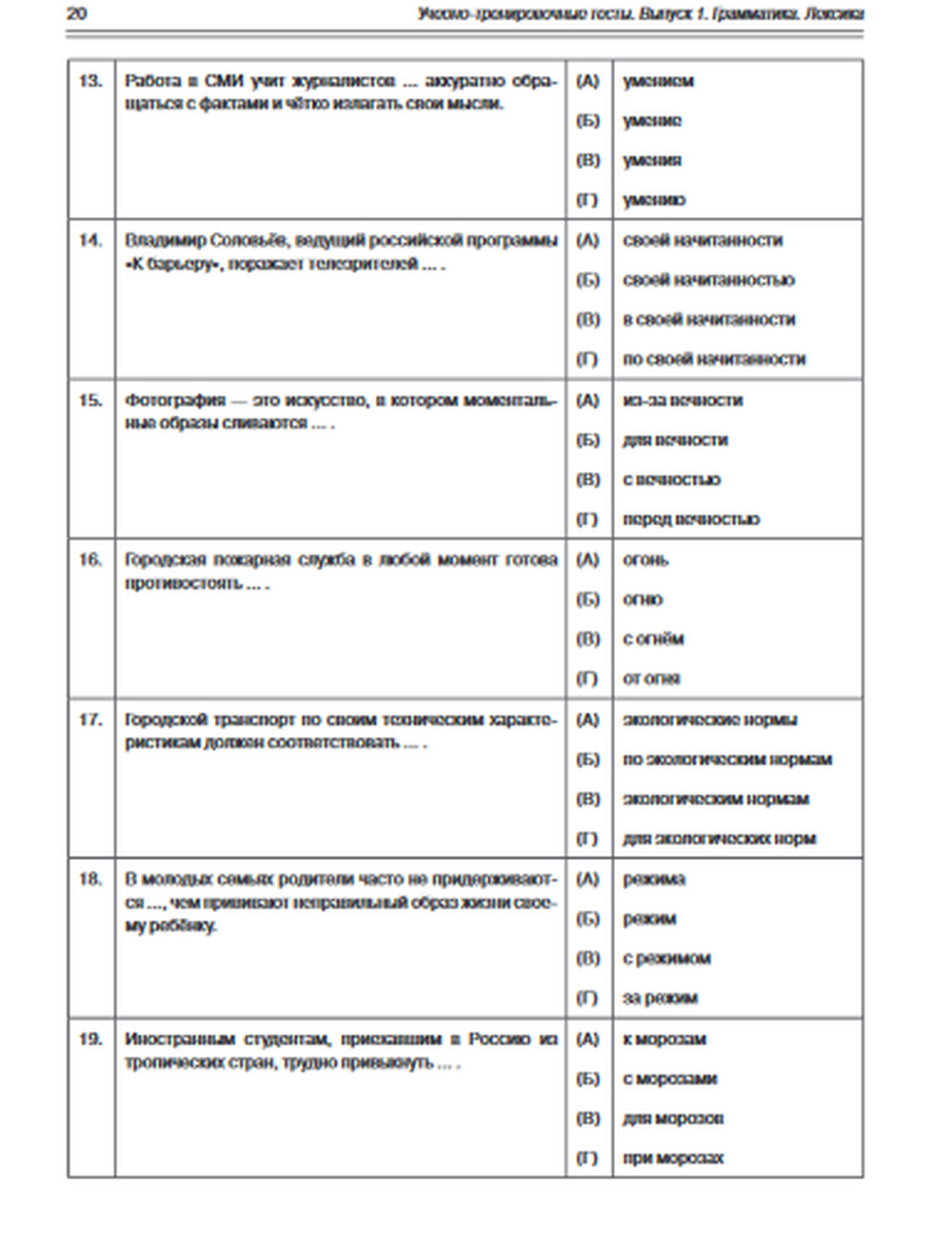 Учебное пособие содержит языковой материал в пределах государственных образовательных стандартов II и частично III сертификационных уровней общего владения русским языком и готовит иностранных учащихся к сдаче соответствующих тестовых экзаменов. Оно имеет практическую направленность, но включает в себя и необходимые для выполнения заданий теоретические сведения о грамматических и лексических явлениях русского языка. Пособие предназначено для работы в аудитории под руководством преподавателя, но также может использоваться учащимися самостоятельно, для чего в Приложении имеются ключи и матрицы. Книга адресована бакалаврам и магистрантам, получающим образование в вузах России, но будет полезна иностранцам, достигшим требуемого уровня владения языком вне зависимости от форм и условий обучения.