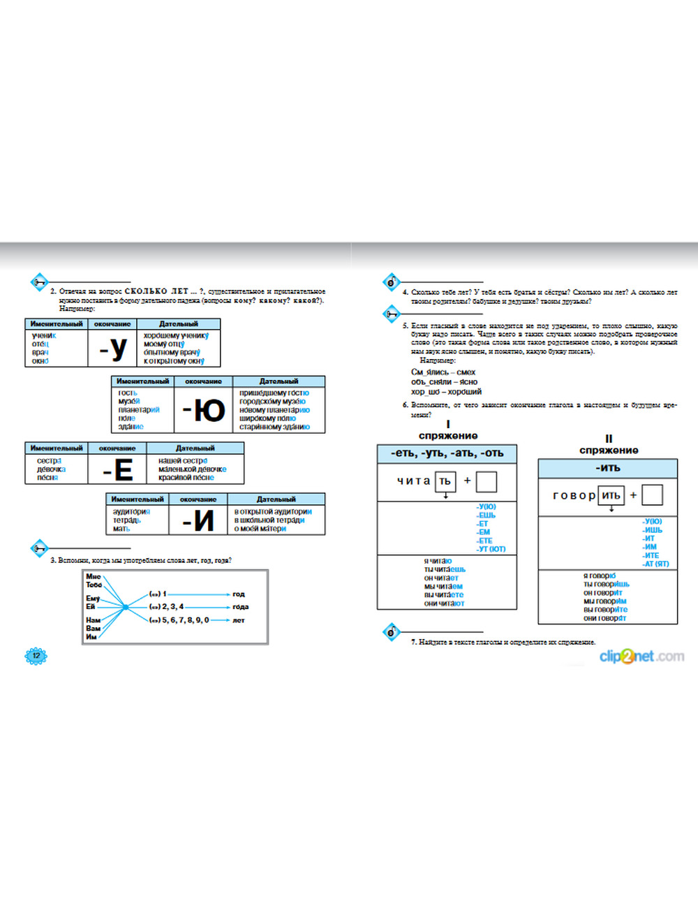 В речи и сознании детей, живущих за границей, система падежей представлена, как правило, фрагментарно. Поэтому в пособии вы встретите значительное число упражнений на падежные формы. Другая грамматическая тема, к которой мы предлагаем постоянно возвращаться, — видовременная система глагола.