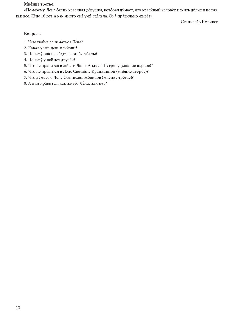 Адаптированные художественные тексты и материалы по страноведению, которые могут использоваться на аудиторных занятиях со старшеклассниками и студентами 2-3 года обучения (базовый уровень (А2) и выше), для индивидуального домашнего чтения, как дополнительный материал к уже существующим учебникам. Содержит вопросы, комментарии к текстам.Материал пособия соответствует требованиям Программы международных олимпиад школьников по русскому языку. Рекомендуется для подготовки к конкурсным экзаменам олимпиад.