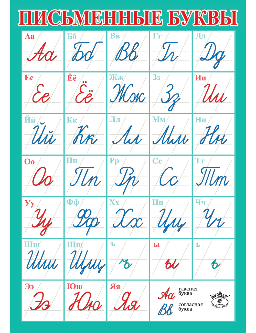 Плакат "Алфавит. Письменные буквы".Материал - мелованный картон.Для детей от 4 лет.Сделано в России.