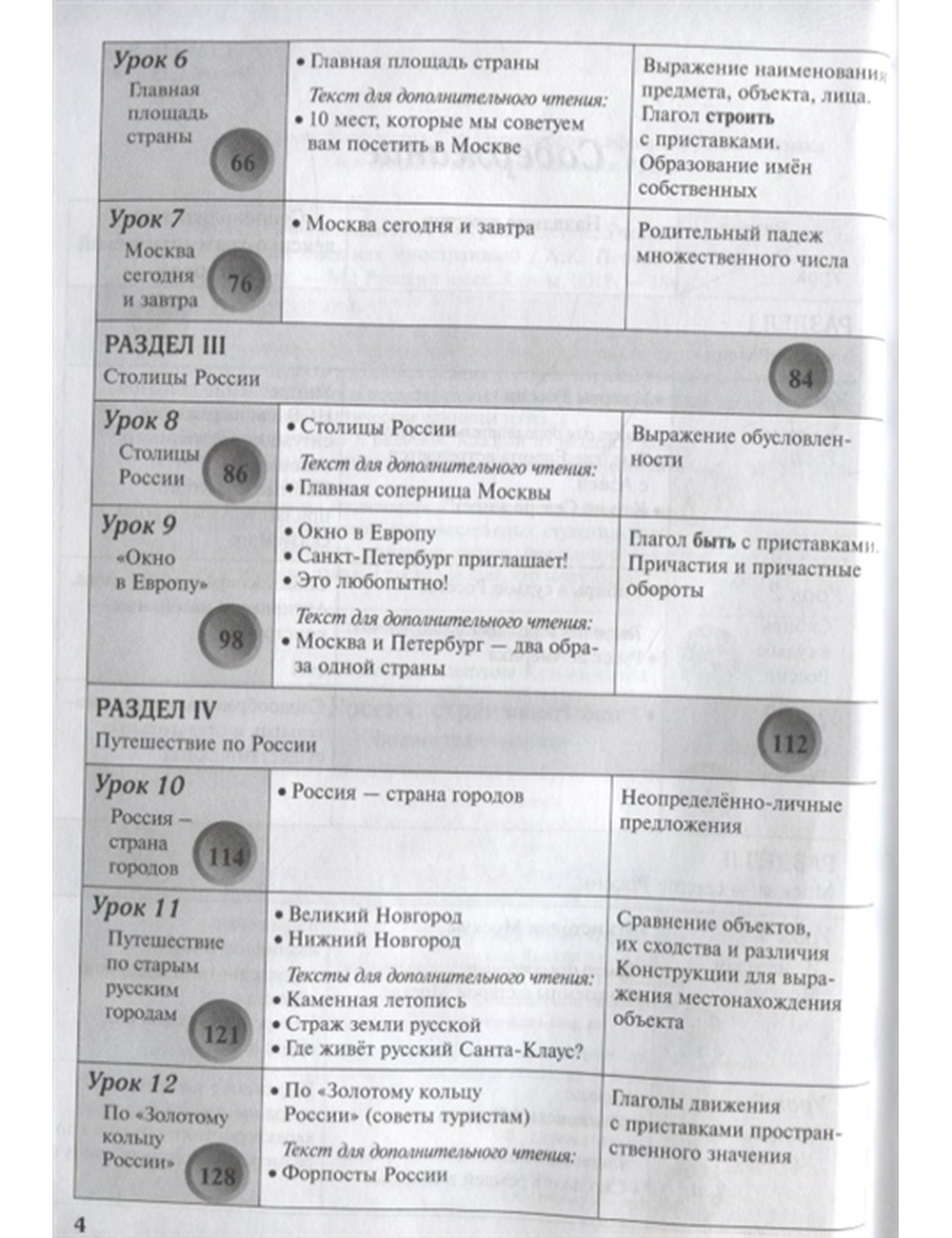 Пособие предназначено для иностранных студентов вузов среднего и продвинутого этапов обучения, учащихся лицеев, гимназий и колледжей с углублённым изучением русского языка и для всех, кто хочет лучше узнать Россию и русских. Цель пособия — на интересном текстовом материале лингвострановедческого характера расширить и углубить знания о стране изучаемого языка. Методический аппарат предтекстовых и послетекстовых заданий позволяет закрепить и активизировать лексико-грамматические единицы урока. Пособие состоит из 6 разделов, включающих 16 уроков. Каждый урок представляет собой чётко структурированный тематический и лексико-грамматический комплекс, который является закономерным продолжением предыдущего и составной частью раздела. Каждый из разделов можно изучать самостоятельно, вне связи с другими разделами. Пособие рассчитано на 60–80 часов аудиторного времени. Уникальность и новизна пособия заключается в нацеленности обучения на диалог культур.