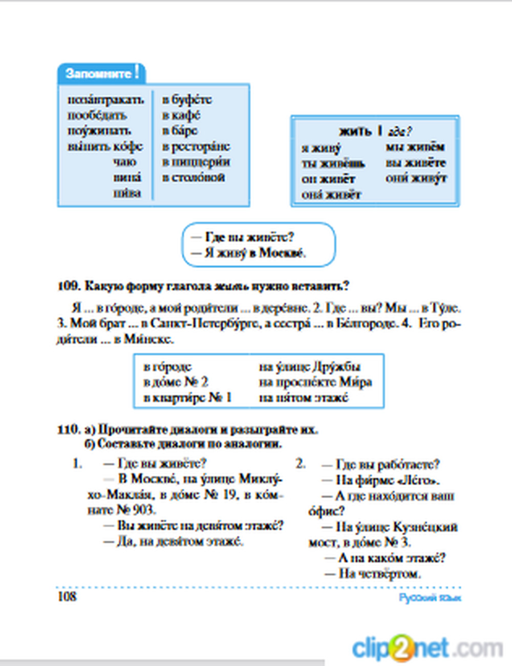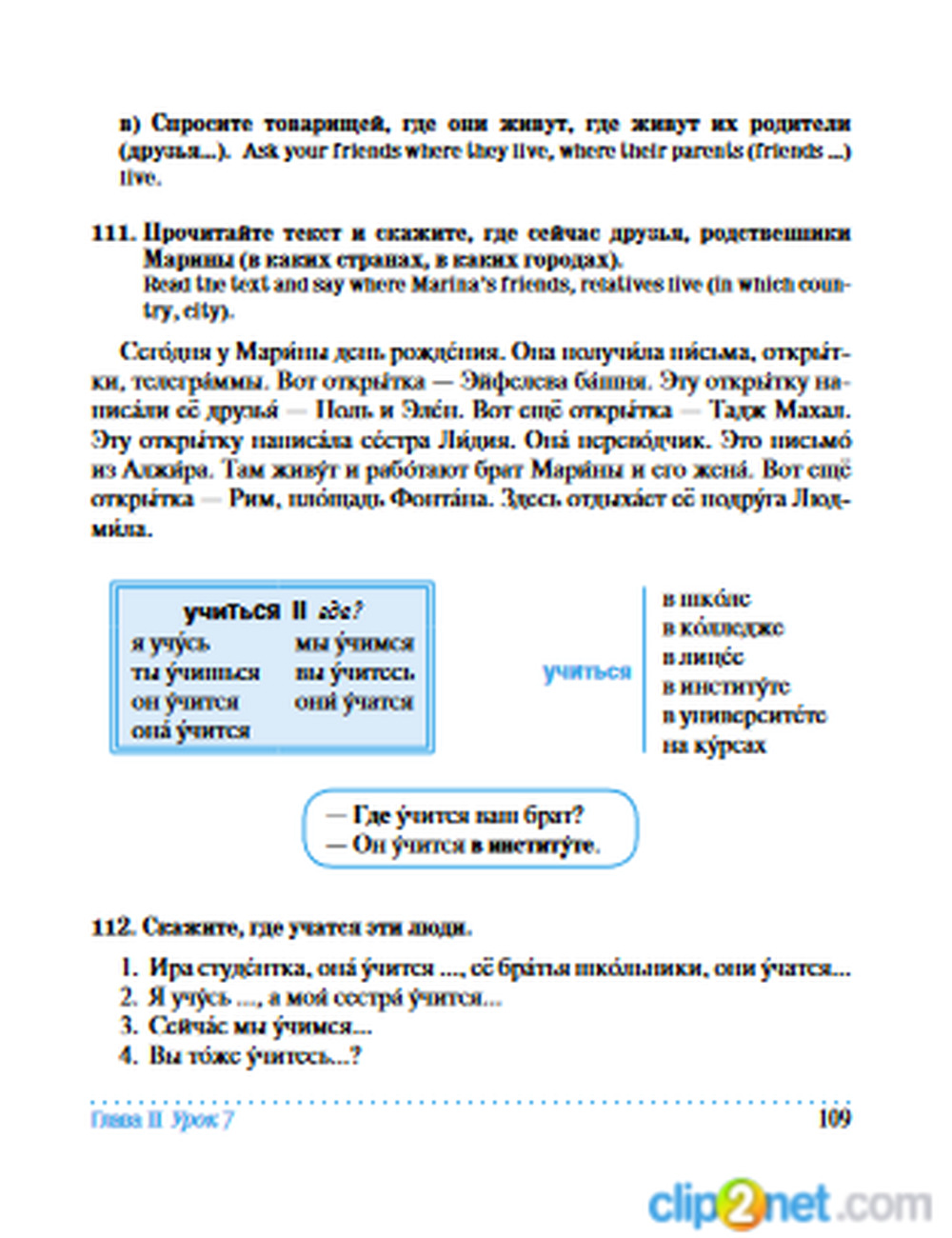 The content and scope of the course materials meet the requirements of the State Educational Standard for Russian as a Foreign Language (Basic Level. General Proficiency). The material is presented in dialogues and monologues, as well as in various language, speech, and communicative exercises, tables, diagrams, and drawings. In the process of performing exercises and tasks, students will learn to conduct a dialogue on everyday topics, talk about themselves, their family, friends, work, and studies, as well as to understand and read short texts on topics relevant to everyday and socio-cultural spheres of communication. The educational materials in each lesson are arranged in a sequence that ensures maximum prevention of difficulties in the formation of skills and abilities. Every fifth lesson has a review, generalization, and control character. The formulations of all tasks in lessons 1-5 are given in two languages - Russian and English. In the following lessons, the phrases are in English.