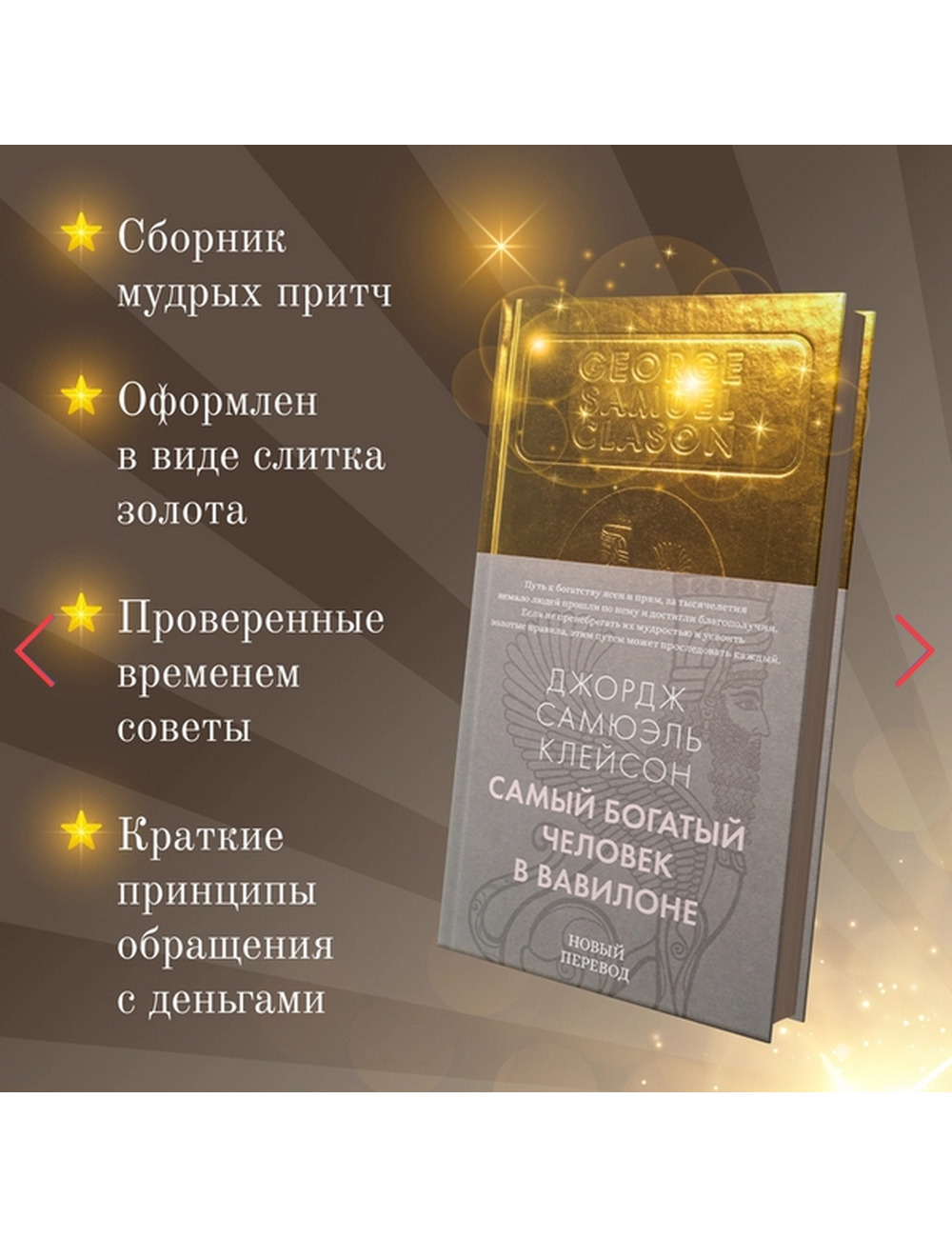 В 1926 году владелец картографической компании Джордж Самюэль Клейсон опубликовал удивительную книгу: по форме она представляла собой сборник занимательных «вавилонских» притч, по сути — четкое финансовое руководство, направляющее желающих улучшить свое финансовое положение на верную дорогу.
