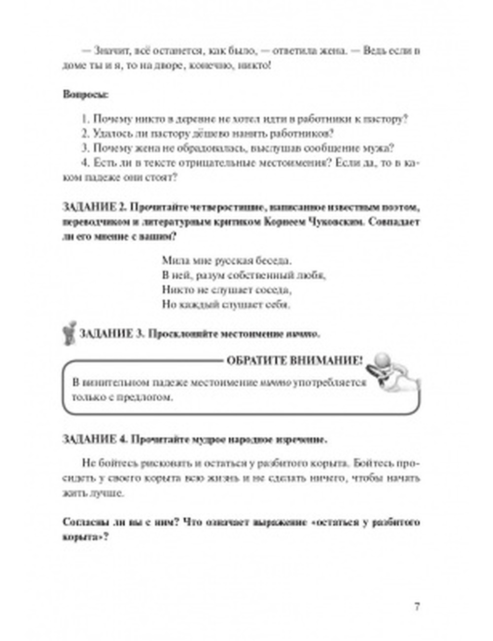 В пособии излагаются грамматические признаки и правила правописания отрицательных и неопределённых местоимений и наречий, предлагаются упражнения лексического и грамматического характера, разнообразные коммуникативные задания. Дополнительно помещены художественные тексты различной степени трудности для выборочного анализа в аудитории и самостоятельной работы учащихся.