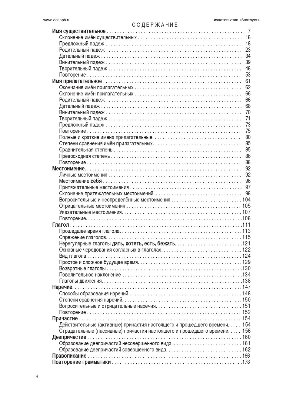 “Русский без границ” состоит из трех частей. Первая – введение. Она предназначена для тех учащихся, которые не умеют читать и писать. Вторая часть – грамматика (морфология). Упражнения в этой части построены по принципу возрастающей сложности. Третья часть – литература – также включает в себя тексты разной сложности в языковом, эмоциональном и культурном плане. Все литературные произведения, которые используются в учебном комплексе, написаны российскими писателями и сопровождаются небольшой биографией автора, адаптированной специально для учебных целей.