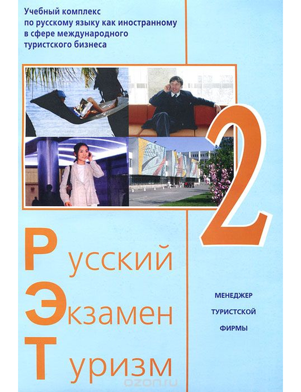 Цель данного комплекса – уверенное владение общением в отобранных ситуациях. Первая книга учебного комплекса РЭТ 2 состоит из трёх частей и охватывает все аспекты обучения: Коммуникативная программа – цели обучения; Учебник. – 10 тематических блоков, тексты для аудирования, ключи, тематический словник к материалам по устной речи; Образец экзаменационного теста «Русский язык в международном туристском бизнесе». Уровень В1 (в системе Совета Европы). Имеется также раздел «Методические советы для преподавателя». Вторая книга РЭТ 2 – Грамматический практикум. Он построен на материале Учебника и предназначен для тех, кто хотел бы усовершенствовать свои грамматические навыки. К комплексу прилагается CD с записью диалогов для аудирования.