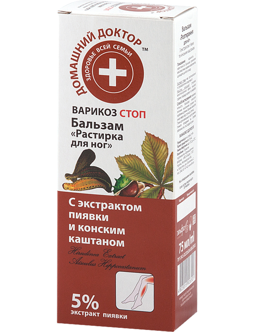 Бальзам "Растирка для ног" с экстрактом пиявки и конским каштаном (варикоз стоп) серии "Домашний доктор".