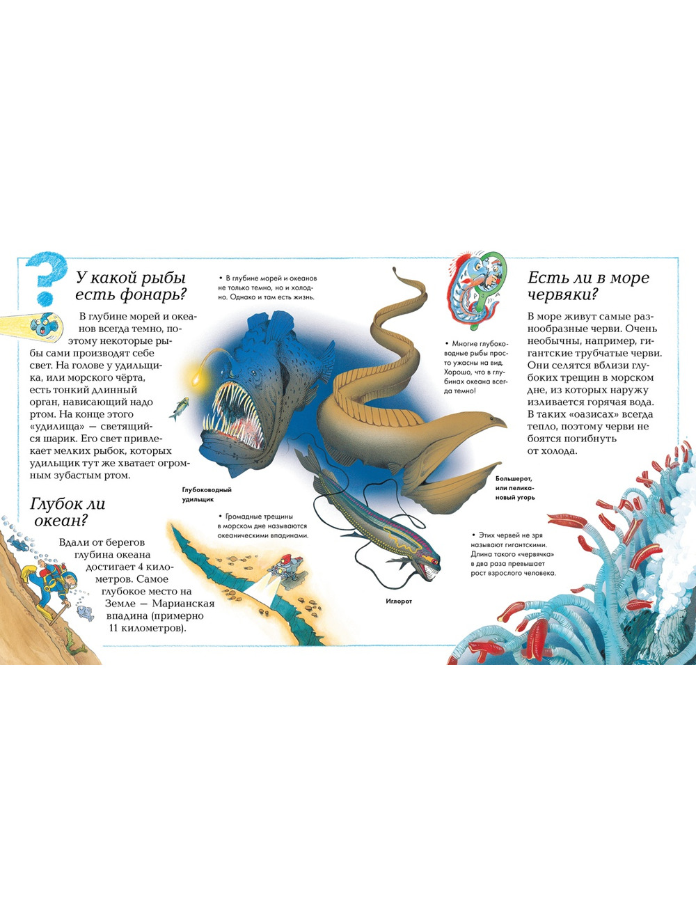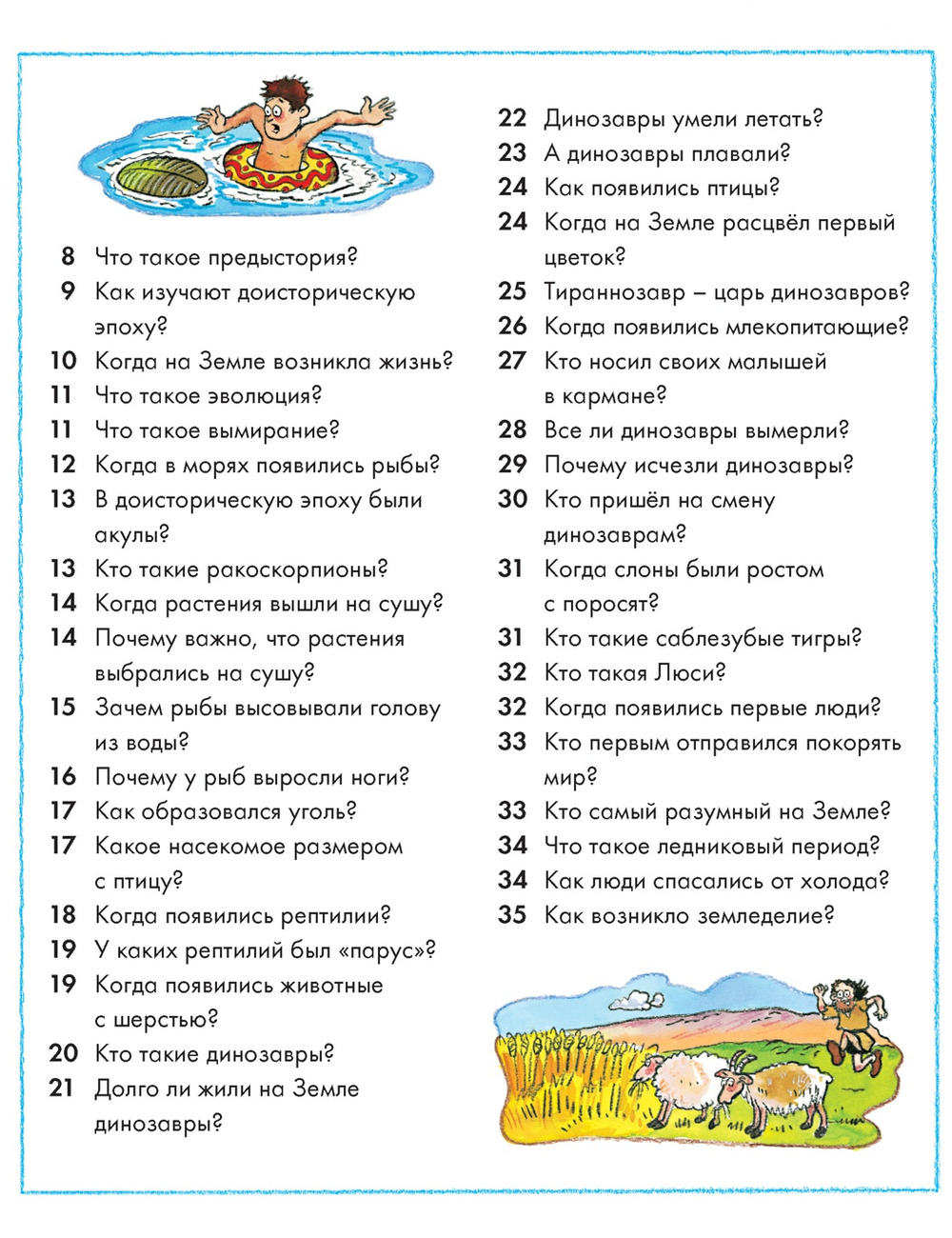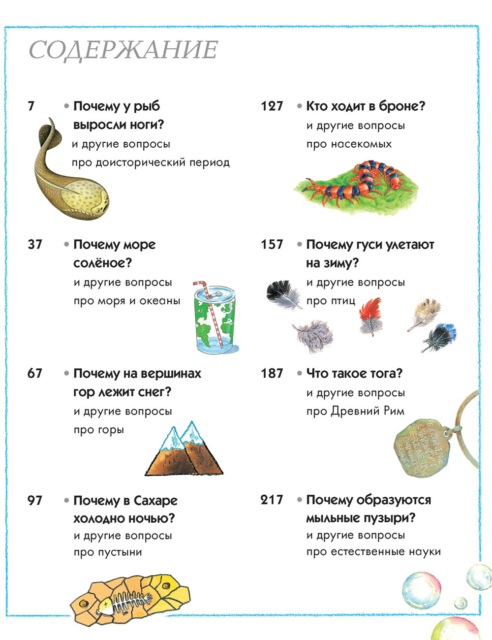 Что такое эволюция? Почему у гор острые вершины? Чем отличаются моря от океанов? Что такое "черные курильщики"? Какая рыба больше всех? Кто такая Люси? Почему кактусы колючие? Почему пищат комары? Что такое сноуборд?