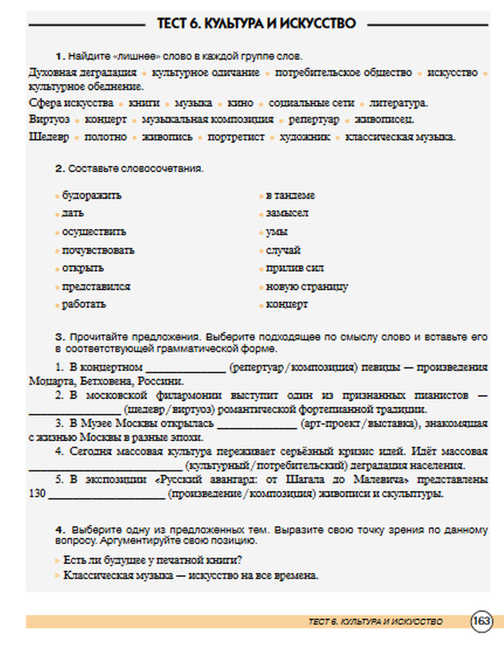 Каждый раздел включает несколько актуальных тем, содержащих аутентичные тексты из современной прессы, сопровождающиеся комплексом упражнений, направленных на изучение и отработку языкового материала и активизацию речевых навыков учащихся. К заданиям и итоговым тестам прилагаются ключи для самоконтроля.