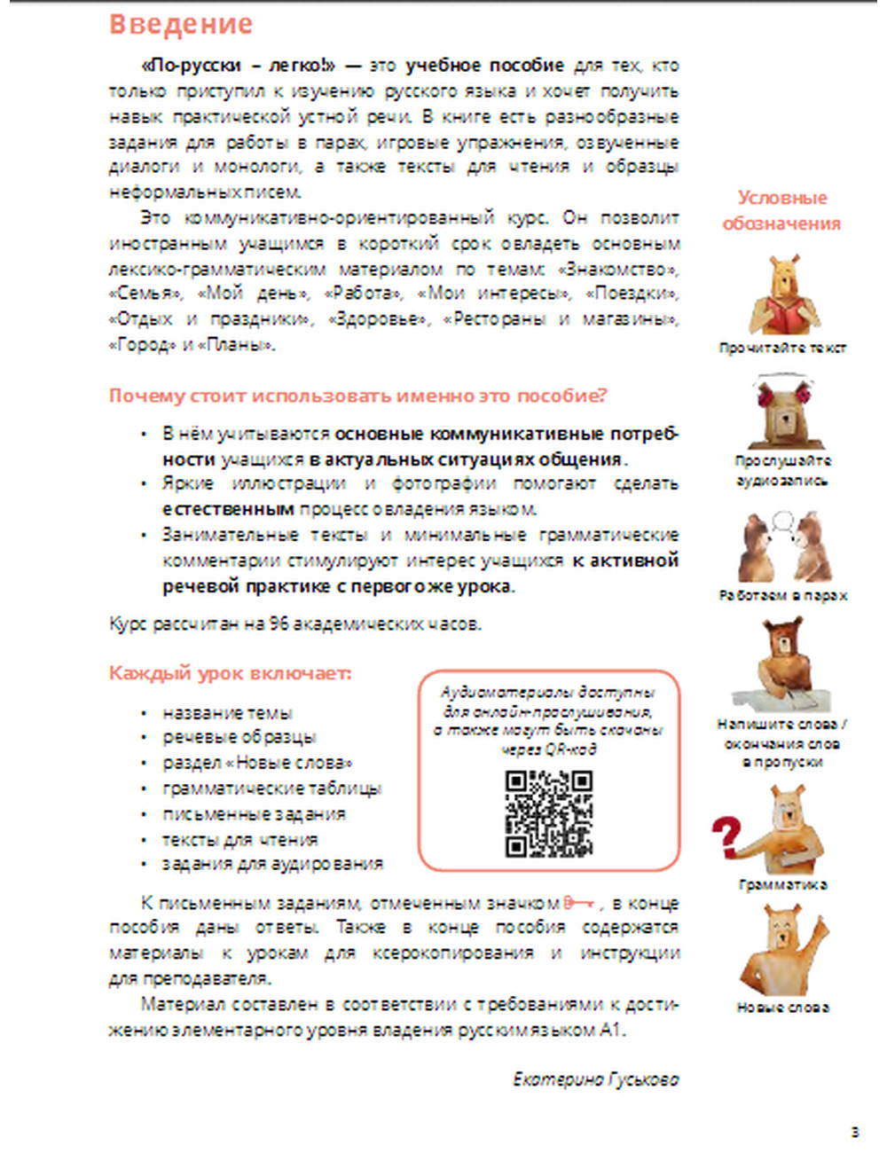 Материал пособия составлен в соответствии с требованиями к достижению элементарного уровня владения языком (А1) и рассчитан приблизительно на 96 академических часов.