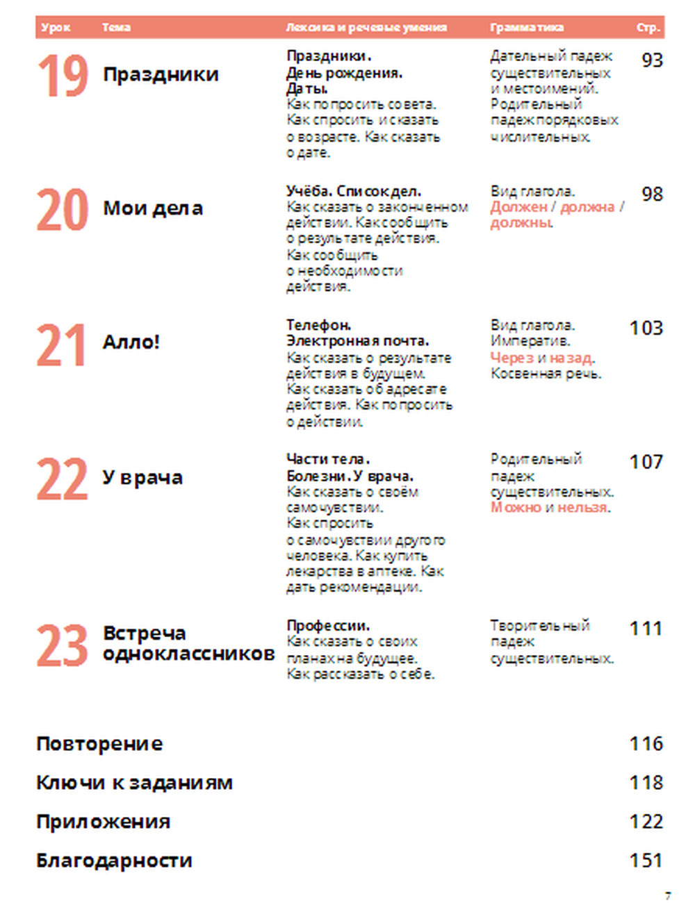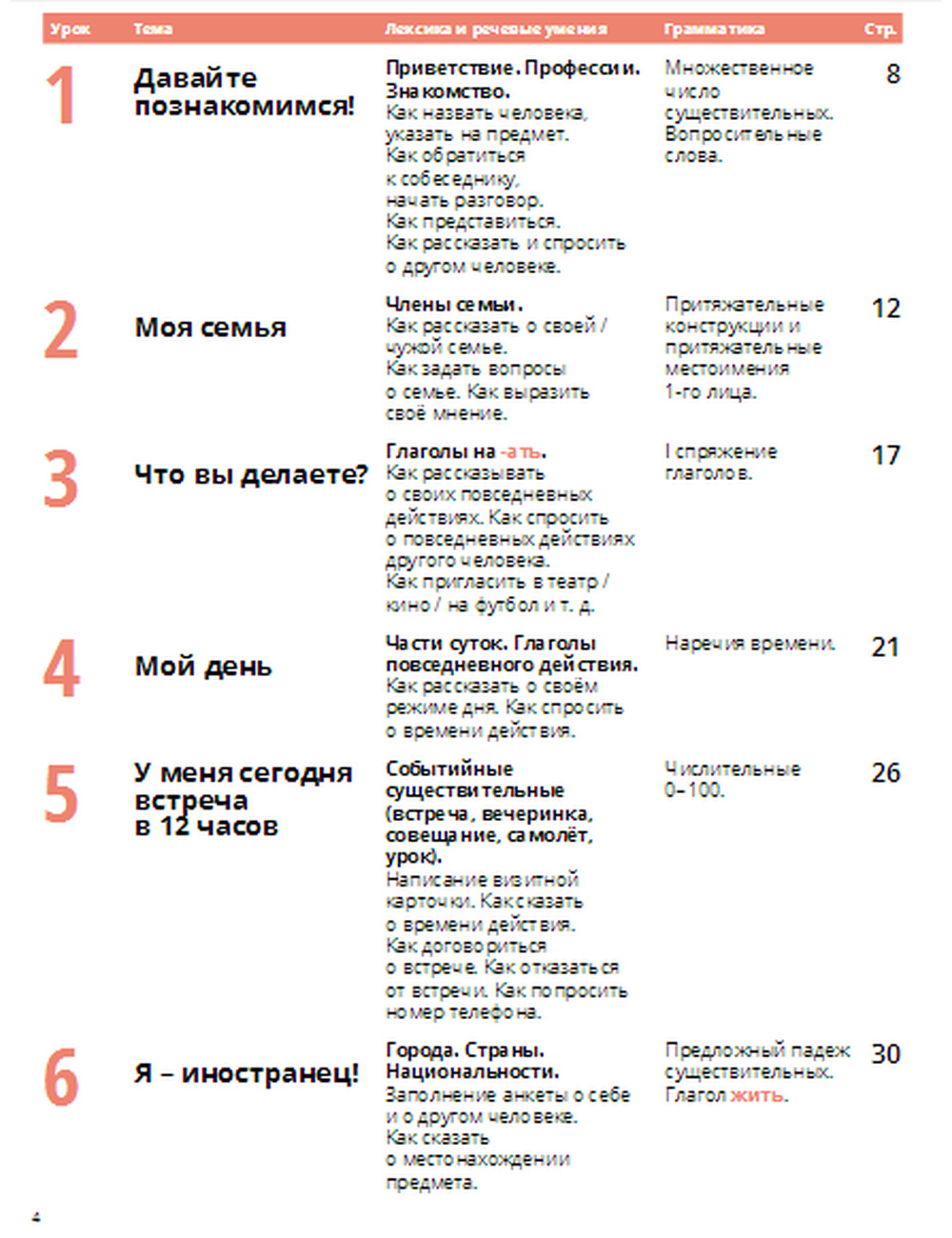 В курсе учитываются основные коммуникативные потребности учащихся в актуальных повседневных ситуациях общения, а минимальные грамматические комментарии стимулируют интерес учащихся к активной речевой практике уже с первых уроков.