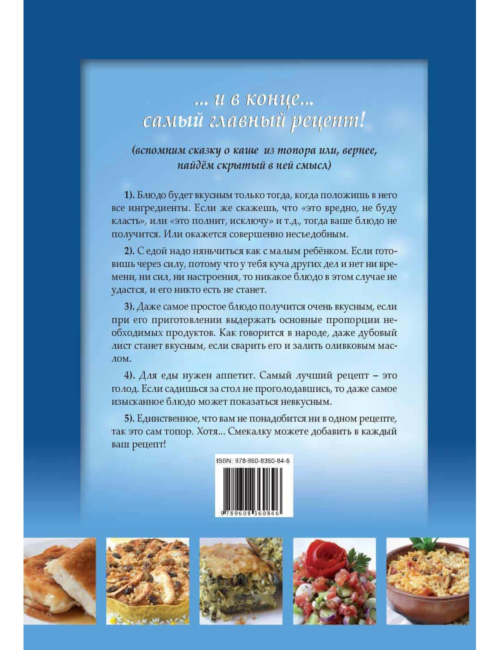 Рецепты здоровой средиземноморской кухни, исключающей мясо, поскольку монахи не вкушают мясной пищи. Более 500 креативных рецептов и много полезных советов, облегчающих процесс приготовления представленных блюд. Находчивые рецепты, подтверждающие, что их автор искал различные способы сделать постную кухню вкусной, разнообразной и интересной. Цитируем из предисловия: “… Представленные в этой книге рецепты являются результатом более чем тридцатилетнего опыта. Все они испробованы на практике – на сковороде и в кастрюле, и потому не являются ни теоретическими, ни научными рекомендациями… ” “Замечательное подарочное издание для каждой кулинарной полки