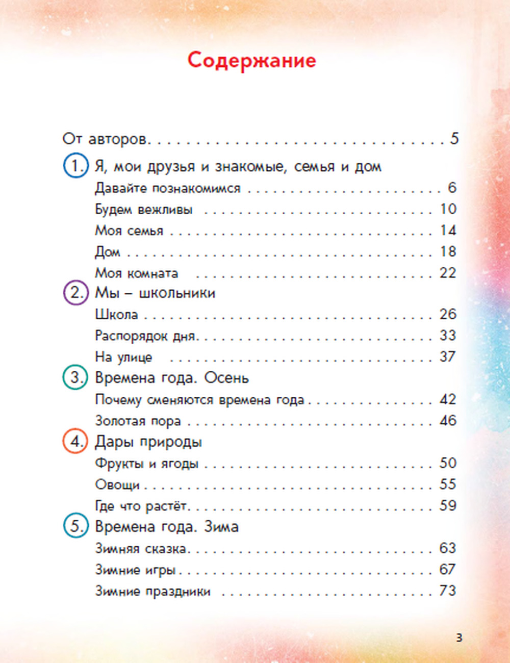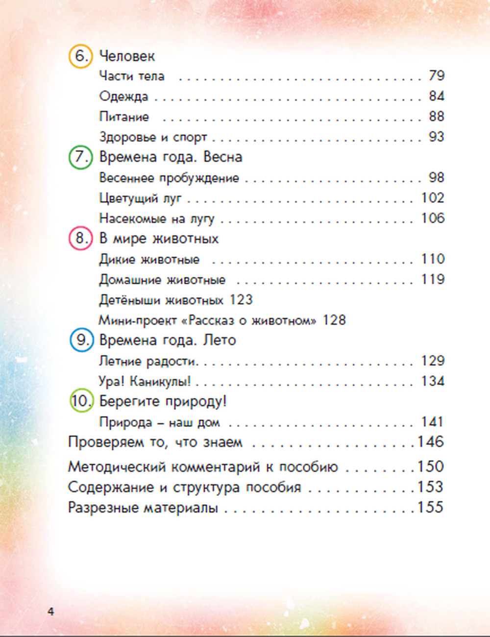 Книга 1 знакомит учащихся 6-7 лет с разнообразием природы, временами года, даёт представление об обществе, культуре, прививает нормы экологически грамотного и безопасного поведения в окружающей природной и социальной среде.