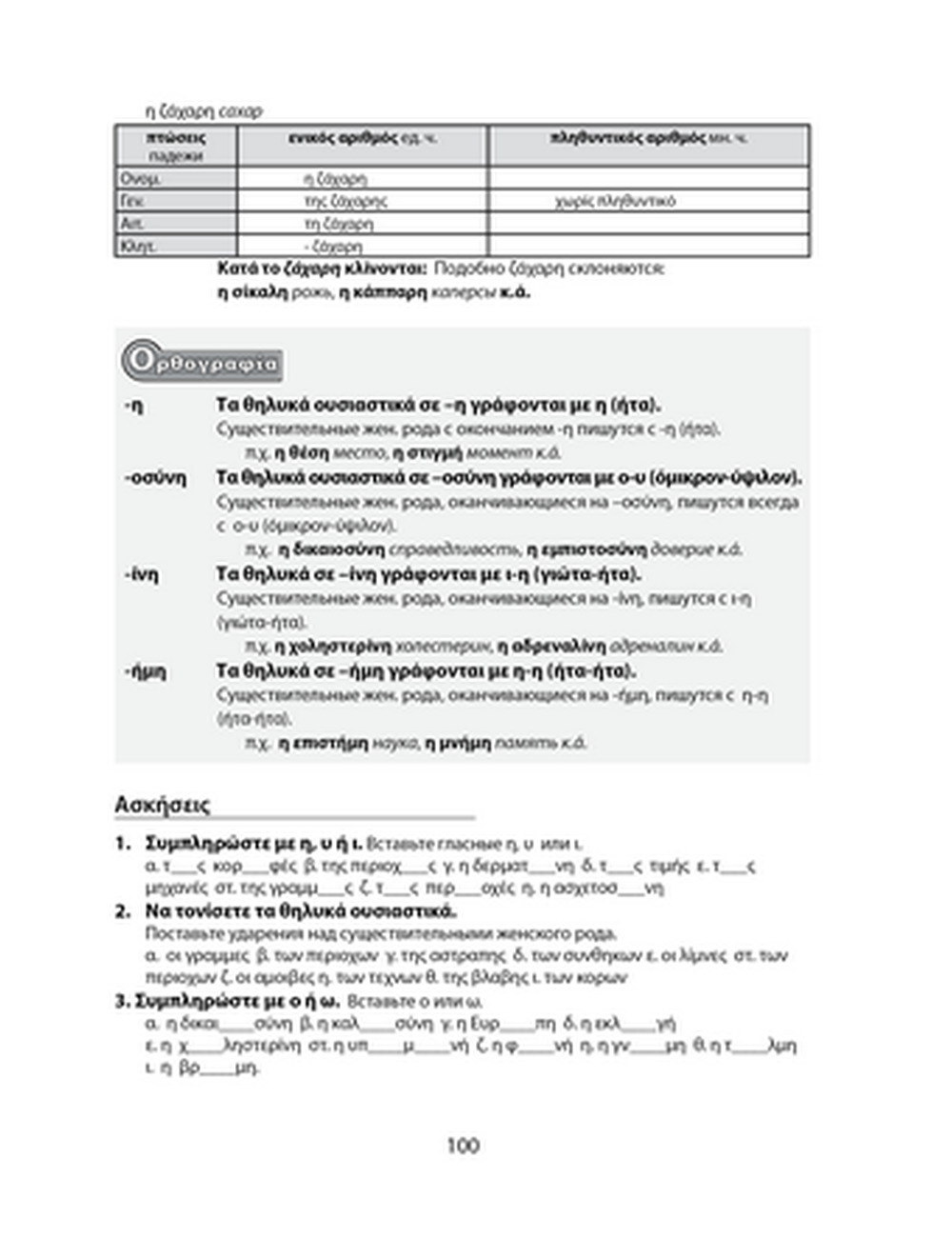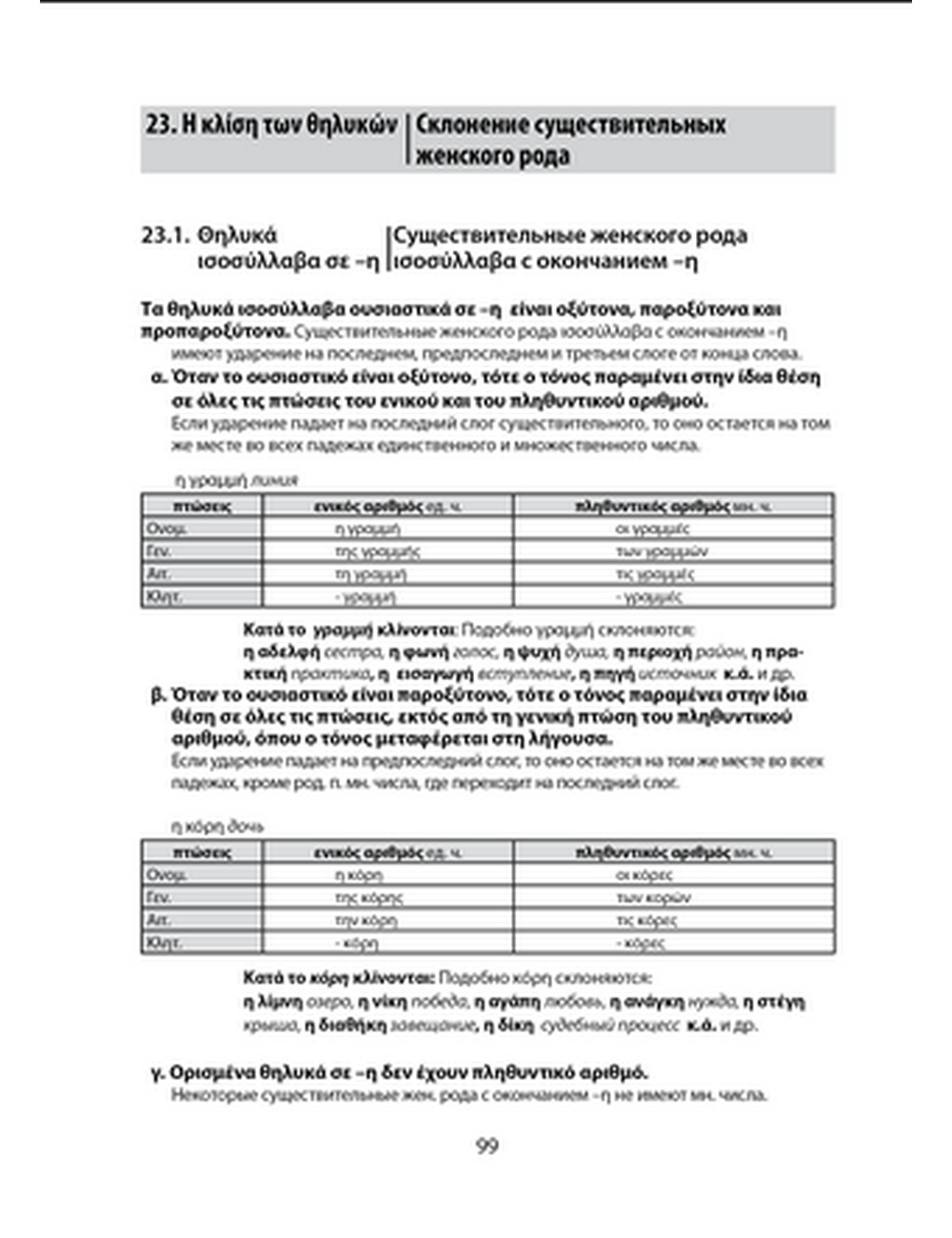 Большое внимание в учебнике уделено орфографии, которая даст возможность желающим освоить греческое правописание и даже не сомневаться в написании гласных в греческих словах. Отдельно дан свод из 1000 наиболее употребляемых греческих глаголов, которые расписаны по временам и наклонениям.