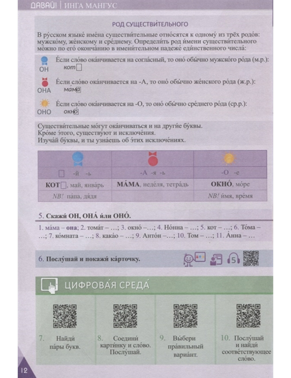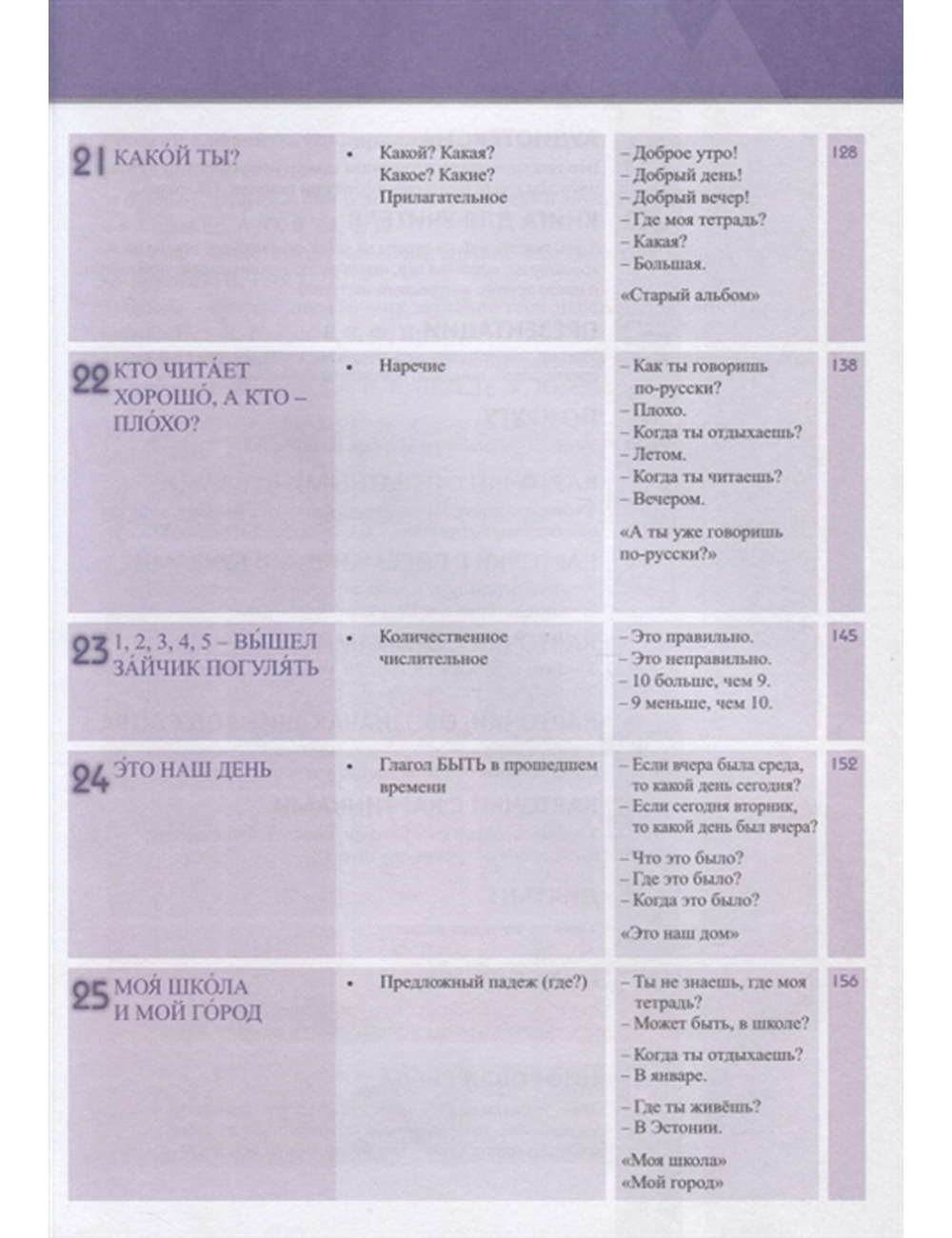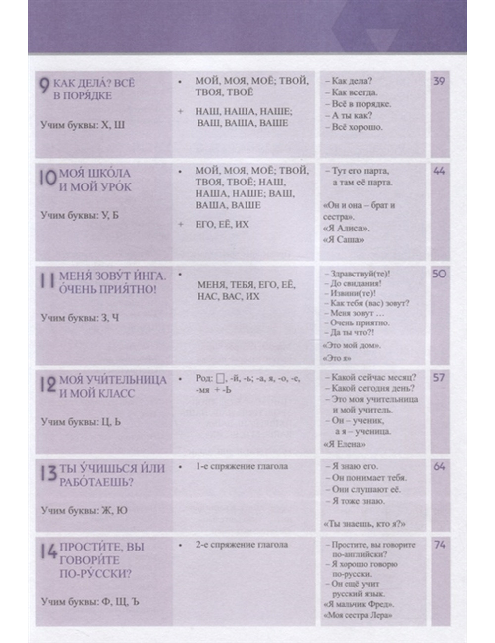 Учебник является частью учебного комплекса для детей с 11 лет, изучающих русский язык как иностранный с нуля до уровня В1. Линейка рассчитана на 4 года (класса) обучения. Комплект для каждого уровня включает учебник, рабочую тетрадь и книгу для учителя, снабженные ссылками на аудиоприложение и дополнительные задания в цифровой среде. Для первого года обучения имеются прописи. Ведется работа над созданием онлайн-приложений для учащихся с разными родными языками.