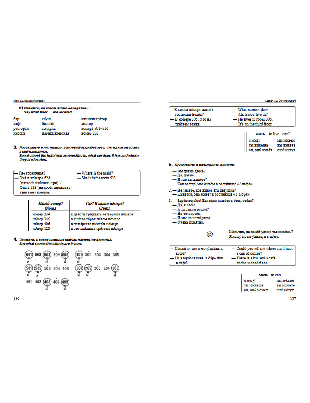 Пособие предназначено для обучения русскому языку зарубежных работников сферы обслуживания. Структура и содержание пособия, учебные материалы и виды упражнений и заданий учитывают коммуникативные потребности данной категории учащихся. Пособие построено по тематическому принципу. Темы ("Гостиница", "Номер", "Услуги" и др.) соотнесены со спецификой сферы общения и наиболее актуальными ситуациями. На CD, который прилагается к пособию записаны тексты и диалоги, помогающие научиться слышать и произносить русские слова.
