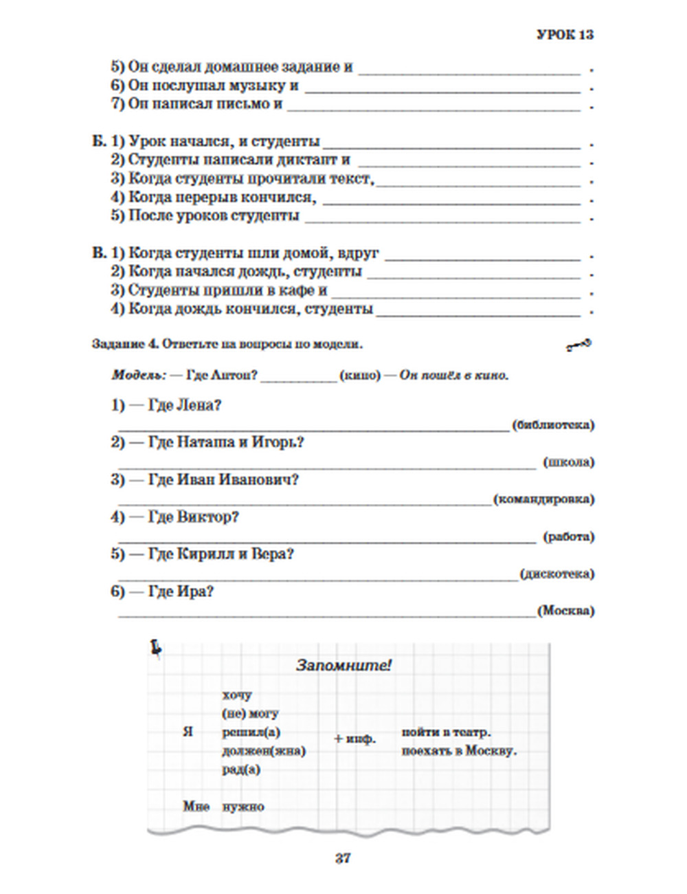 Учащиеся овладеют основными значениями предложно-падежной системы, научатся вести беседу на темы, связанные с описанием простого события (повествование), адекватно (в соответствии с этикетными нормами) вести диалоги в ситуациях бытового общения. В конце пособия представлены проверочные работы к каждому уроку. Пособие имеет аудиоприложение. QR-коды со ссылками на аудиозапись размещены в тексте издания. Ключи к заданиям размещены на сайте издательства.