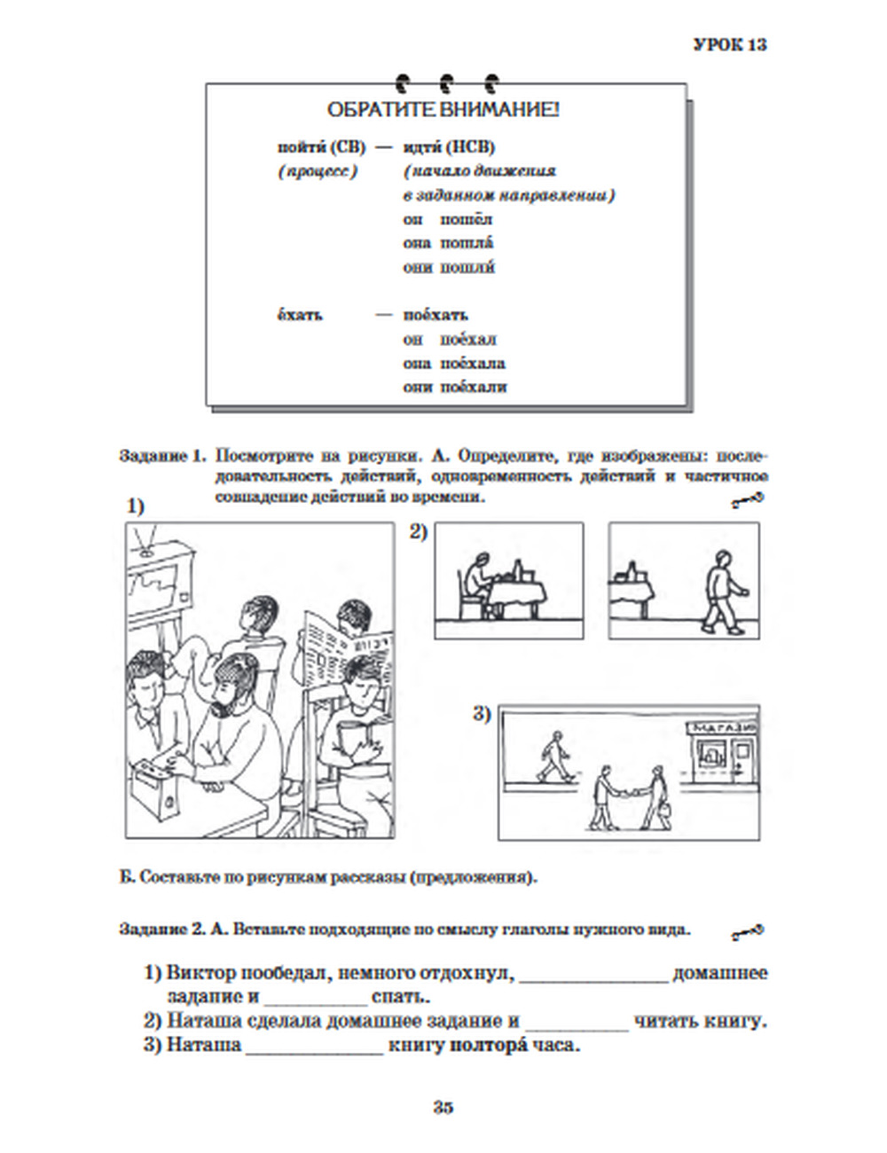 Пособие предназначено для иностранцев, начинающих изучать русский язык, но уже получивших первичные сведения о строении русского двусоставного предложения, о предложно-падежной системе русского языка и имеющих лексический запас в объёме 600-700 слов.
