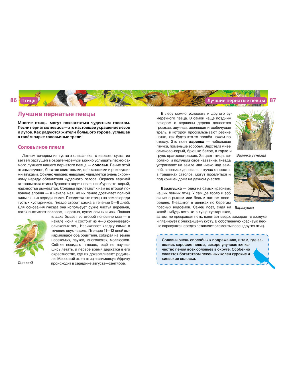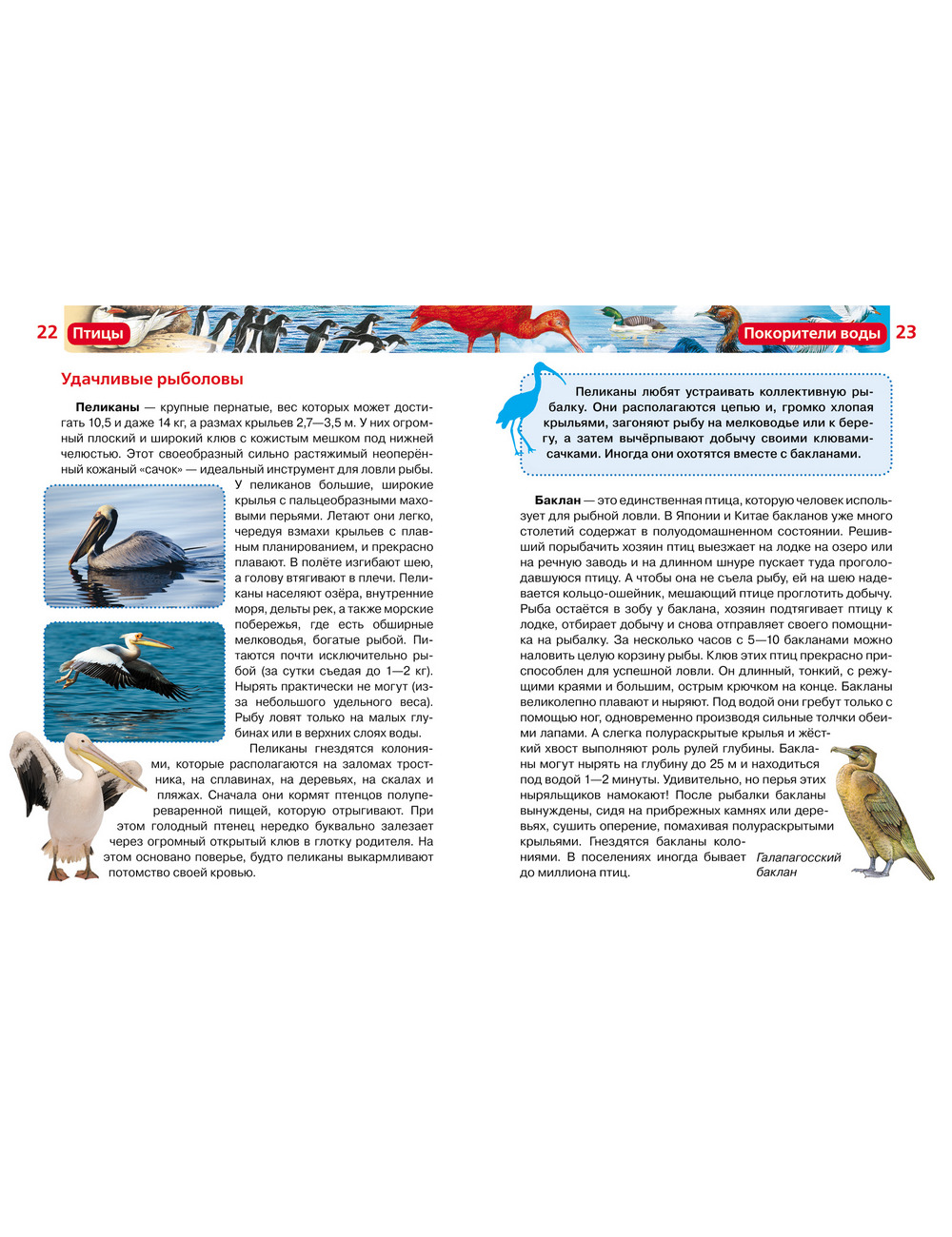 В книге рассказывается о многообразии мира пернатых: от огромных страусов, утративших способность к полету, до небольших незаметных птиц, завораживающих нас своим пением. Птицы освоили все материки и океаны, все земные стихии и ландшафты. Вы узнаете много интересного об образе жизни, характерных особенностях и повадках многих представителей класса птиц.
