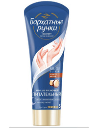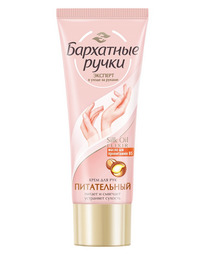Бренд Бархатные Ручки представляет крем для рук ПИТАТЕЛЬНЫЙ. Насыщенный крем с гиалуроном устраняет 5 проблем сухости кожи и делает ее заметно мягче и нежнее. Интенсивно разглаживая кожу, придает рукам ухоженный вид. Формула Silk Oil Elixir усилена гиалуроном для глубокого питания кожи после контакта с водой. Кожа ваших рук нежная для ласковых прикосновений и бесценных моментов. Микромасла восстанавливают клетки кожи и в комплексе с протеинами шелка делают ее мягкой и нежной.Использование дневного и ночного крема повышает эффективность ухода в 2 раза![1] Днем крем питает и защищает кожу от потери влаги, а специальный ночной крем обеспечивает кожу рук питательными веществами для интенсивного восстановления ночью.
