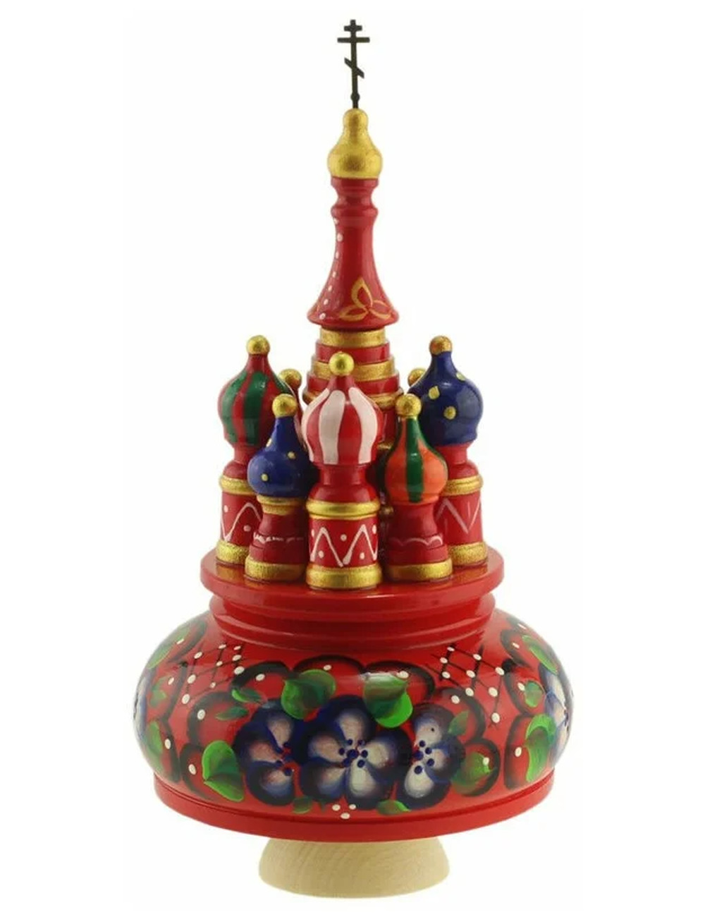 Этот музыкальный русский сувенир не просто изображает знаменитый московский храм Василия Блаженного, он еще и проигрывает мелодию песни "Подмосковные вечера".