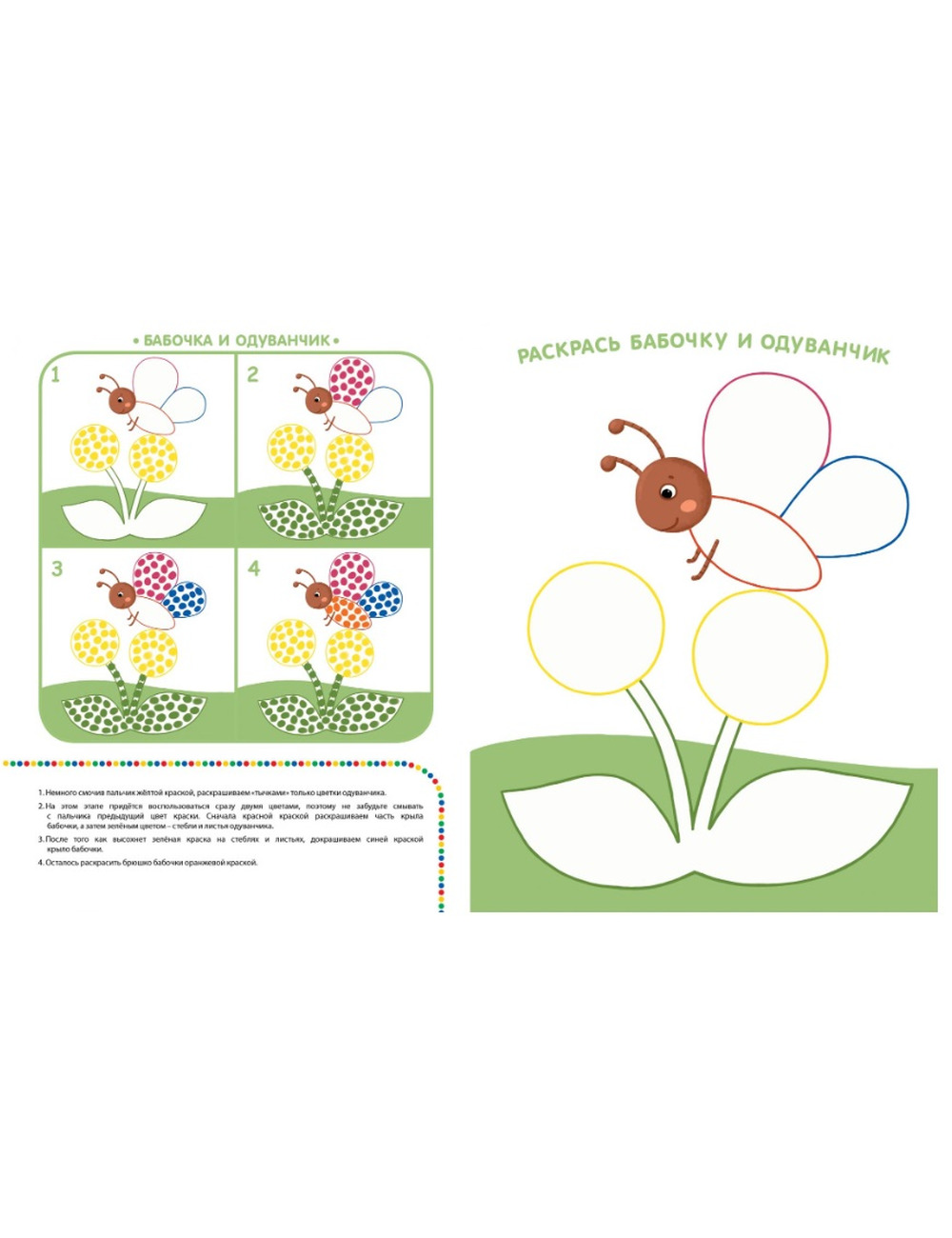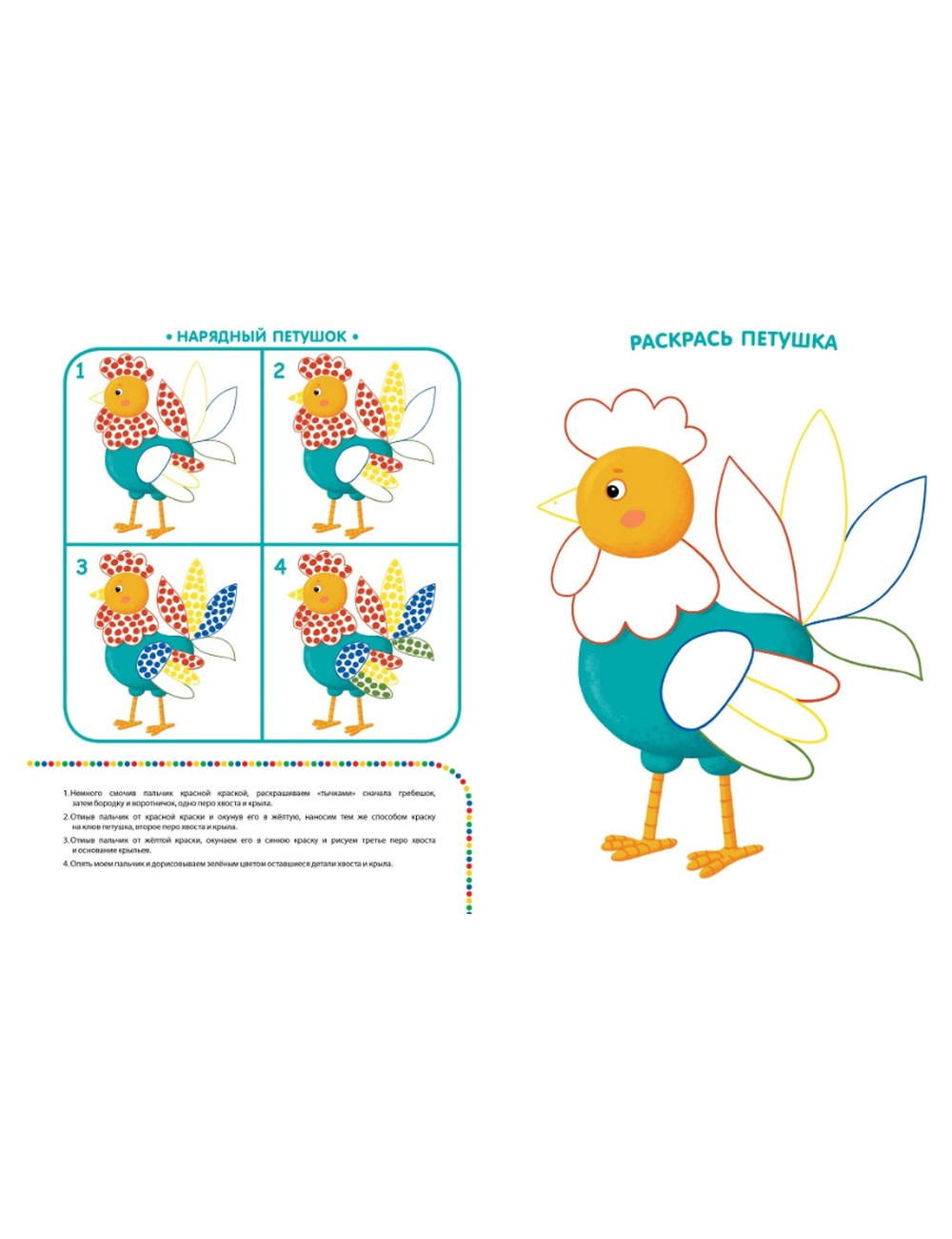 В книжке «Рисуем пальчиками» ваш ребёнок освоит пальчиковую технику рисования.