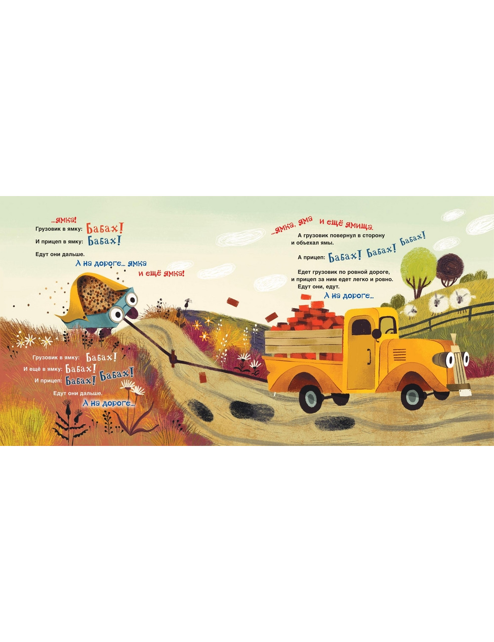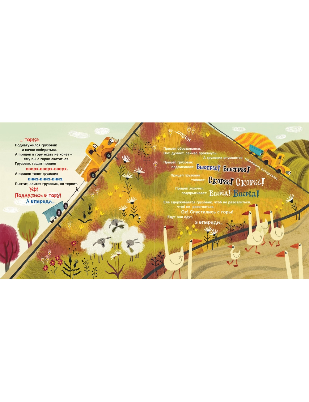 «Это грузовик, а это прицеп» - история для самых маленьких, о том, как грузовик и его друг непоседливый прицеп, трудятся с утра до ночи, развозя разные грузы. В пути их ждут ямки и ямищи, горы и пригорки, и лужи, и дожди… Этак у кого хочешь колесо разболится. Хорошо, что друг всегда придёт на помощь в трудную минуту!