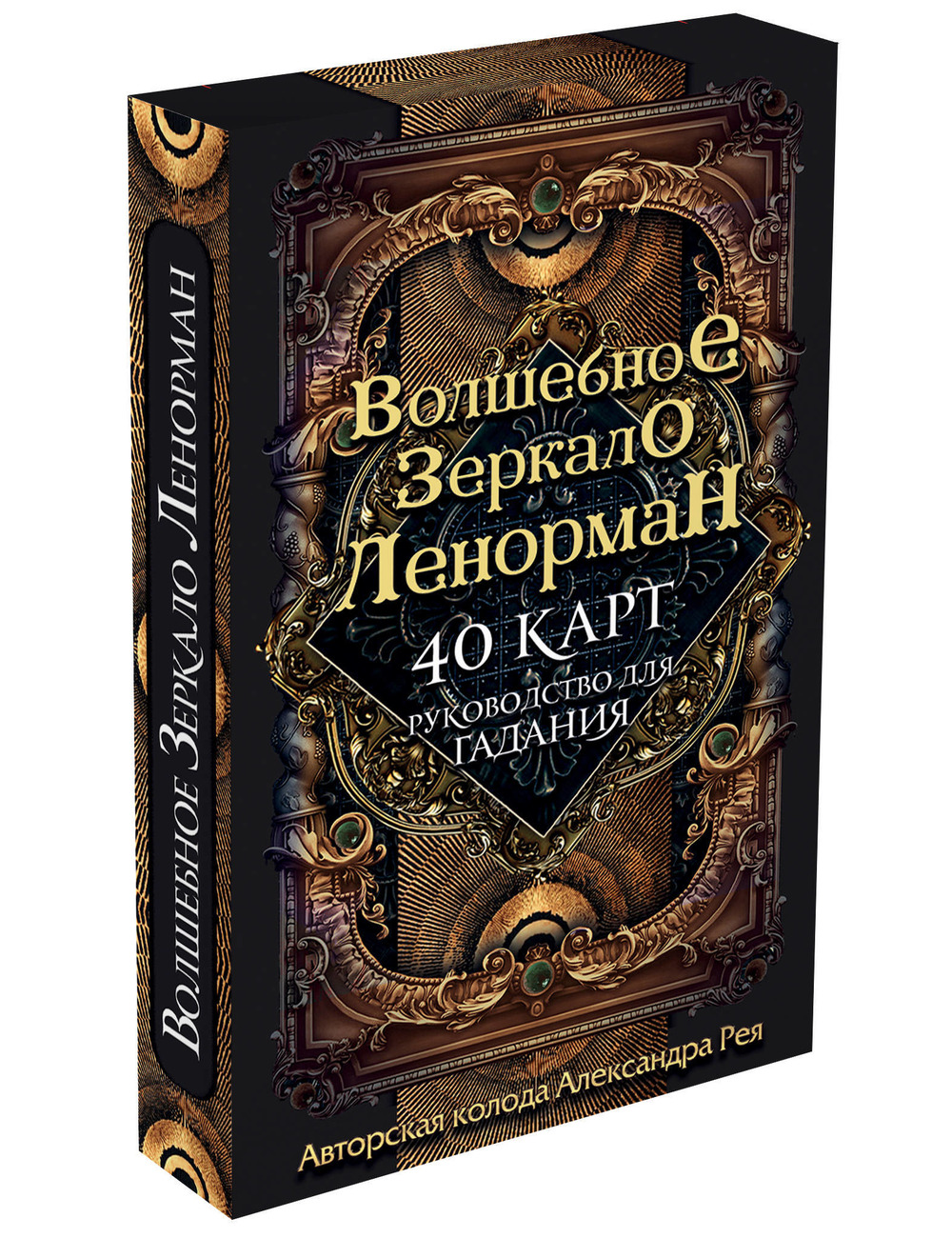 Новое прочтение знаменитой колоды Марии Ленорман от Александра Рея. «Волшебное зеркало Ленорман» - это: - классическая колода из 36 карт, выполненная в темных с золотом тонах, отличающаяся мистической и загадочной атмосферой; - 4 дополнительные карты, которые помогут вам повысить точность гадания и толкования; - руководство к колоде в изящной форме белых стихов и правила использования дополнительных карт.