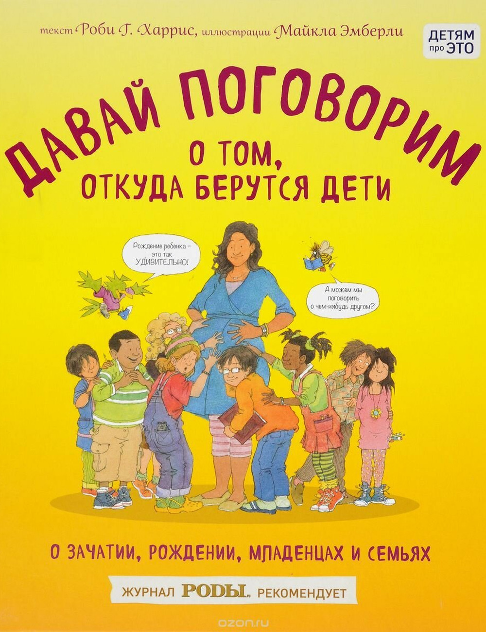 По мнению психологов, с ребенком нужно говорить на деликатные темы, связанные с изменениями в теле, зачатием, беременностью, рождением и усыновлением. Неоценимую помощь в этом вопросе вам окажет книга «Давай поговорим о том, откуда берутся дети. О зачатии, рождении, младенцах и семьях», которая ответит на большинство вопросов ребенка и сведет к минимуму смущение родителей при разговоре с детьми.