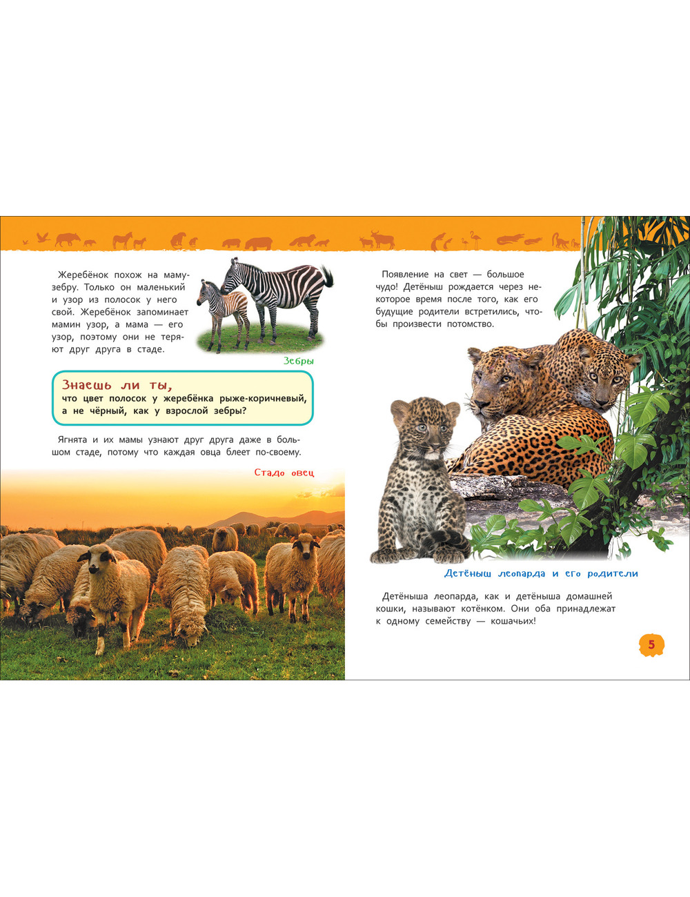Из нашей книги ребенок узнает, как появляются на свет детеныши разных животных, заботятся ли о них родители; чем отличаются малыши, рожденные в лесу, от тех, чей дом в степи или пустыне; каким животным папы заменяют мам, а каким никогда не доводится повстречаться со своими родителями.