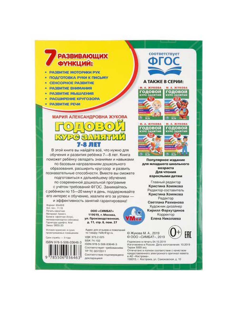 У книги «Годовой курс занятий. 7-8 лет» ТМ «УМка» 7 развивающих функций:
