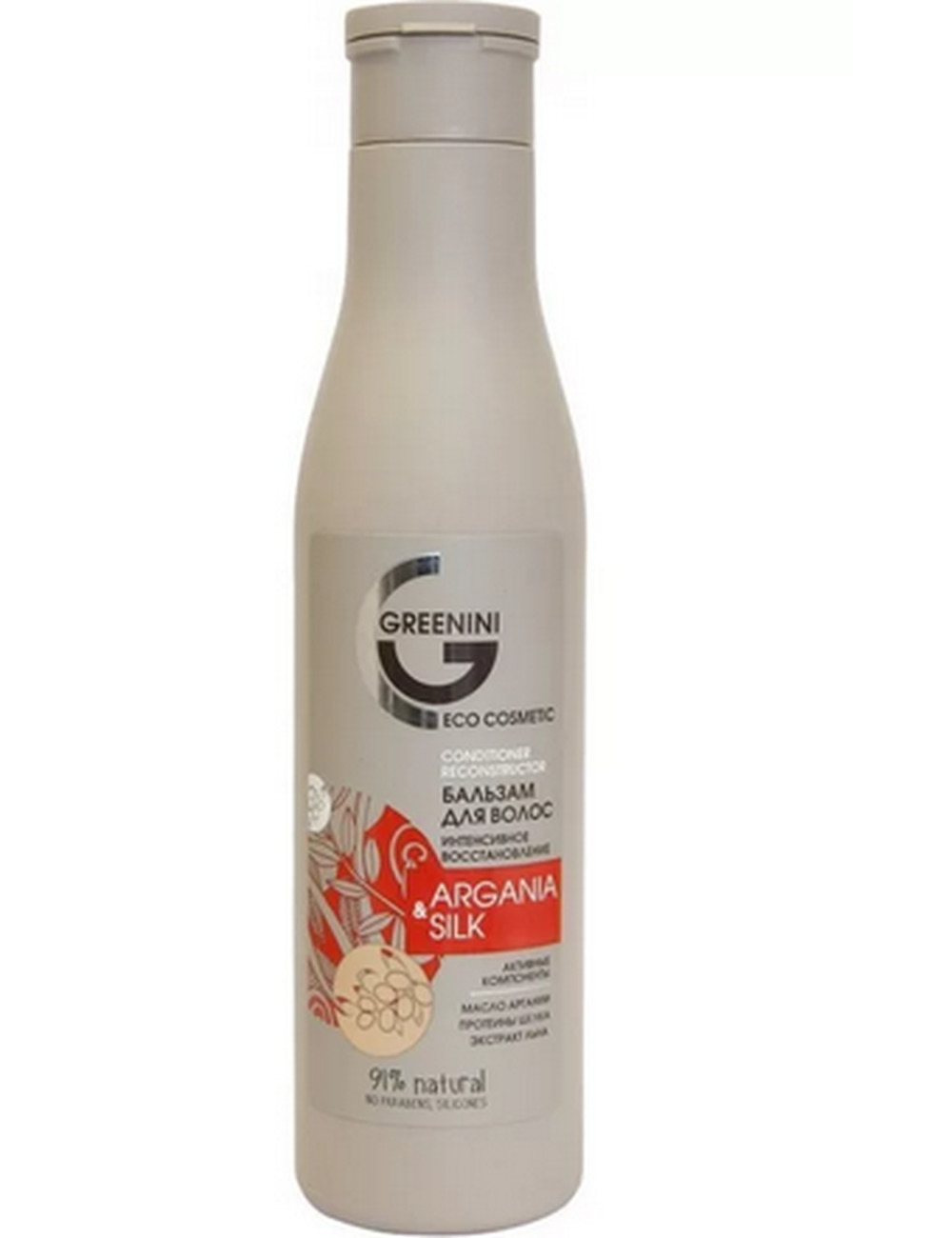 Бальзам для волос Greenini «Интенсивное восстановление» Argania & Silk поможет быстро вернуть поврежденным локонам силу и прочность. Насыщенная формула с шелковыми протеинами и аргановым маслом быстро восстанавливает здоровую текстуру волосков, укрепляет кутикулу и упрощает расчесывание.
