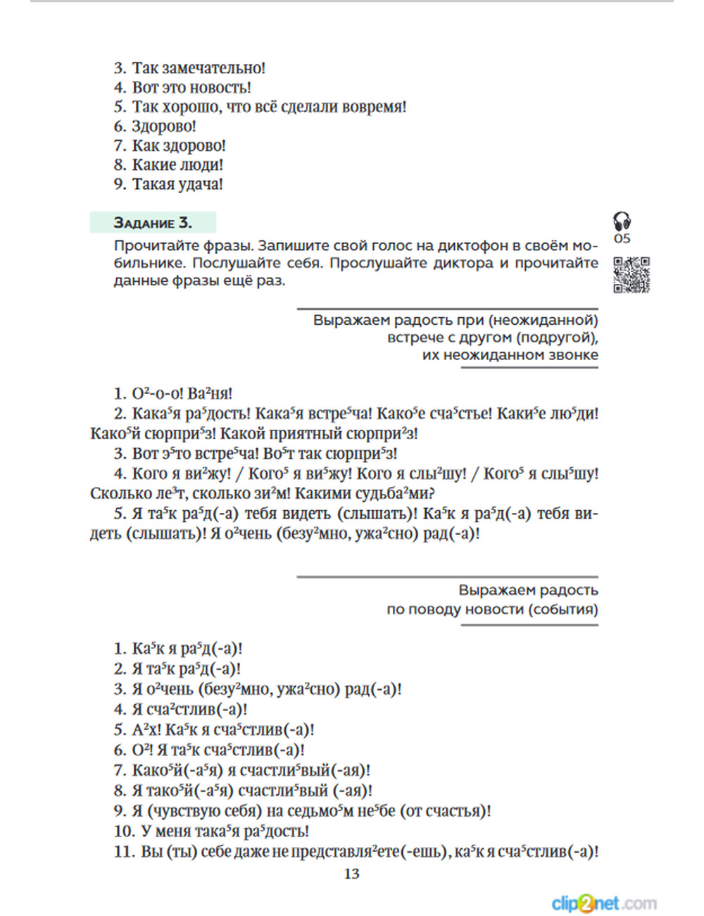Пособие предназначается для иностранных учащихся, изучающих русский язык на продвинутом этапе обучения (ТРКИ-2 / B2), а также для всех желающих усовершенствовать свои интонационно-речевые навыки.