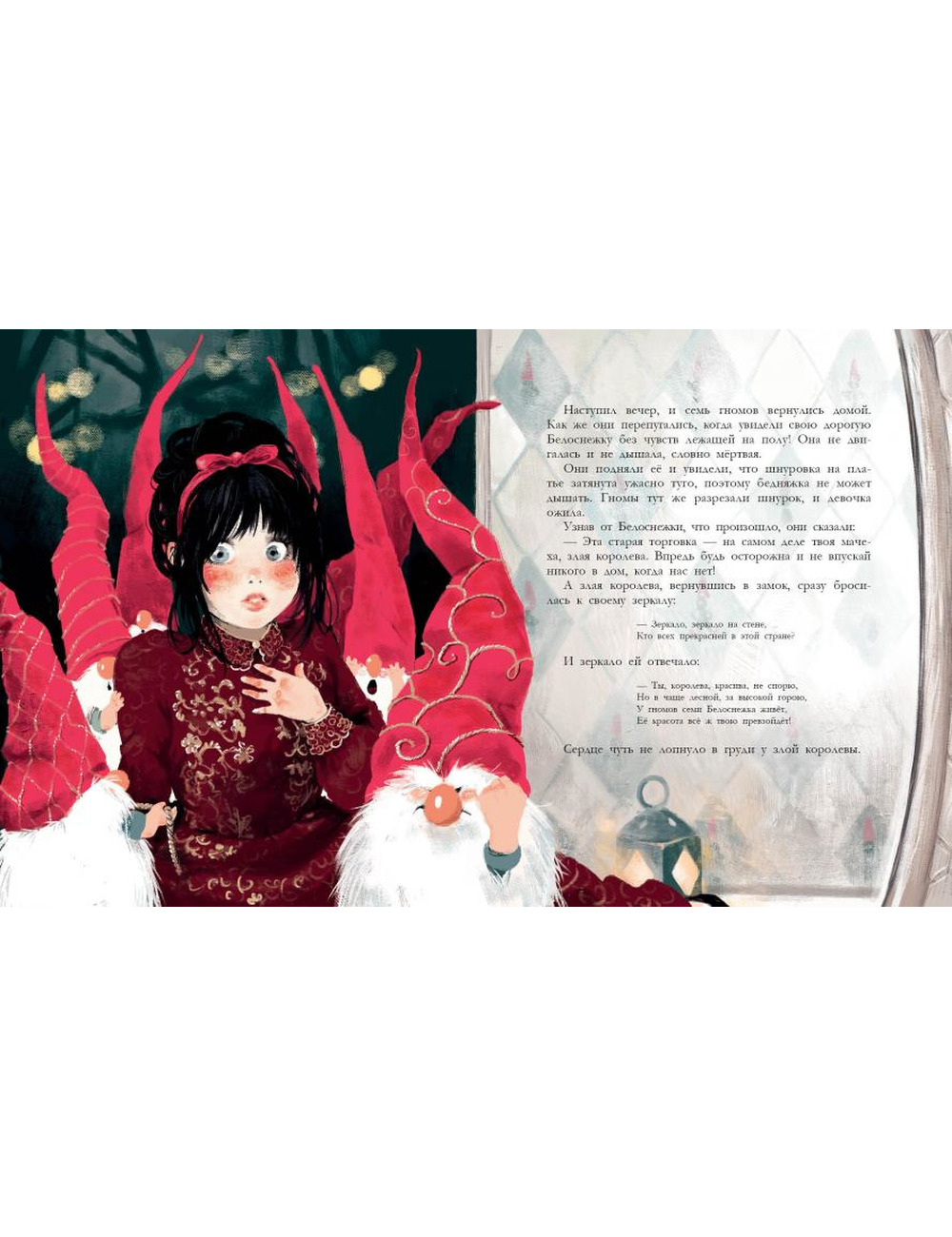 Белоснежка - героиня одной из самых любимых сказок. Она хрупкая, доверчивая и очень красивая. Она смотрит на мир огромными удивлёнными глазами, сквозь которые видна вся её чистая открытая душа. Именно такой предстаёт перед нами Белоснежка в иллюстрациях Екатерины Ефремовой. А гномы у молодой художницы выглядят милыми пушистыми бородачами - сразу видно, что они очень добрые.